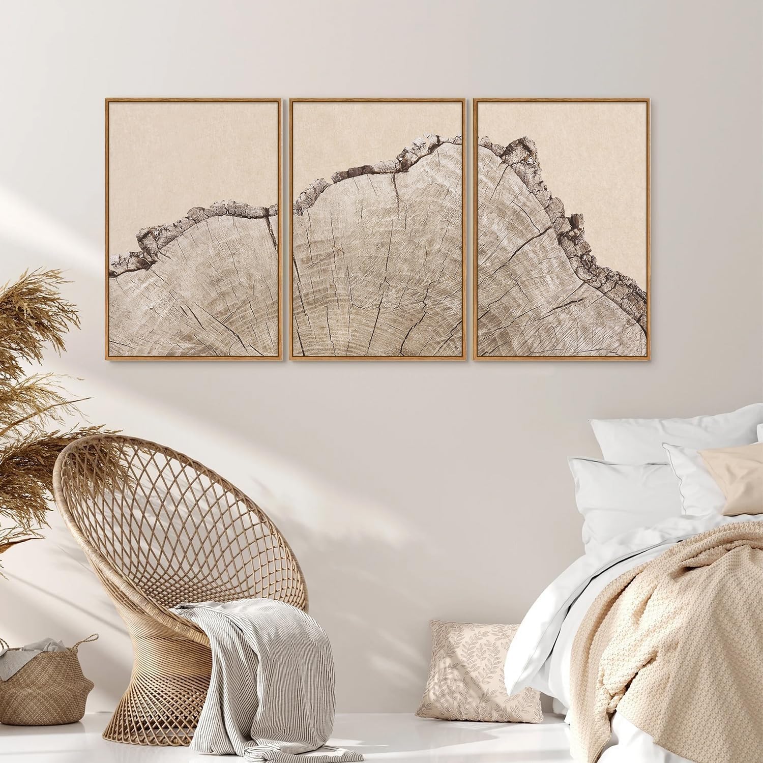 SIGNINART Large Tree Ring Framed Canvas Wall Art Set, Rustic Beige Nature Wooden Wall Decor, Neutral Wood Stump Artwork, Modern Art Prints for Bedroom Living Room Office 16"x24"x3