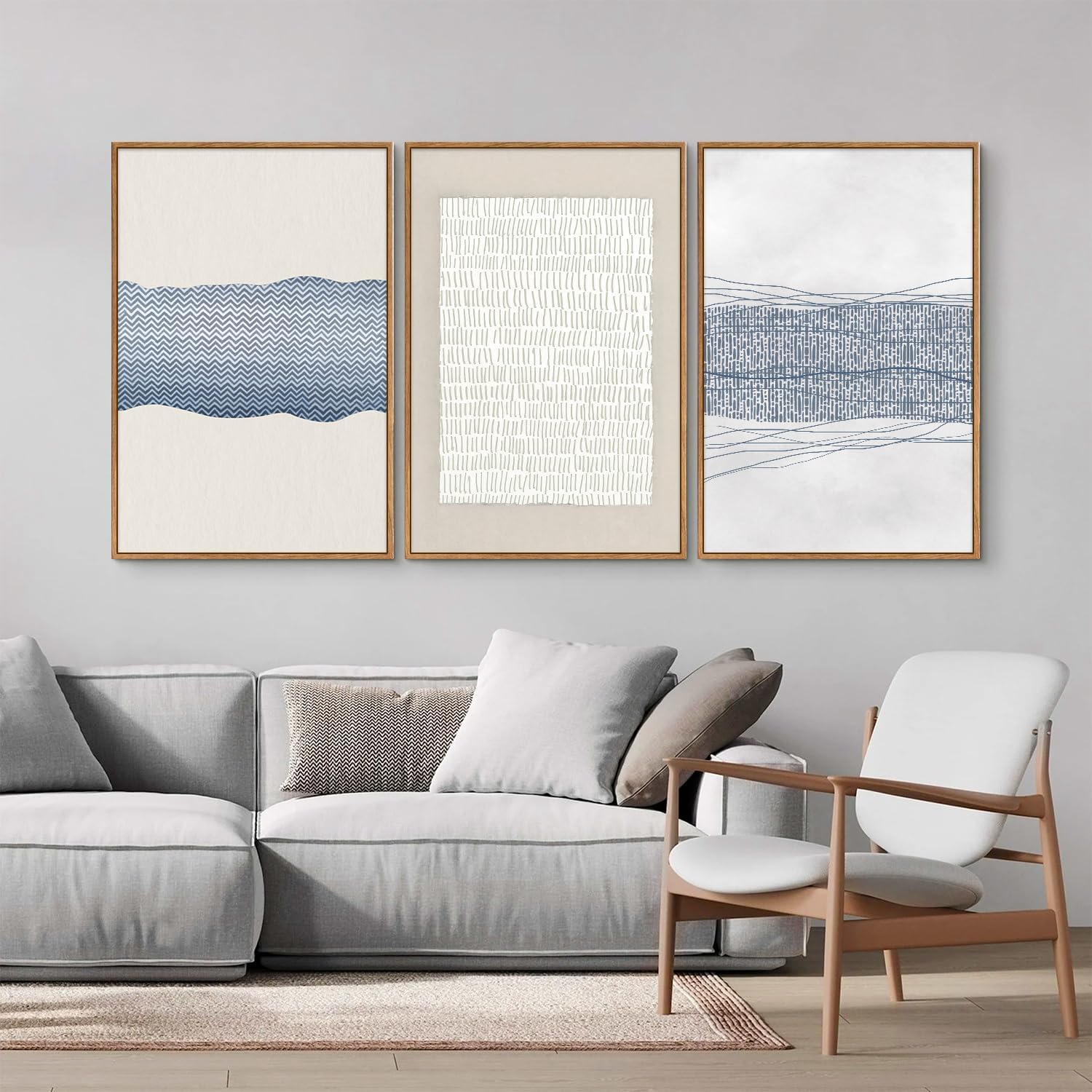 SIGNINART Large Abstract Framed Canvas Wall Art Set of 3, Minimalist Boho Line Art Prints, Modern Neutral Aesthetic Wall Decor, Blue and White Art Paintings for Living Room, Bedroom, Office 16"x24"