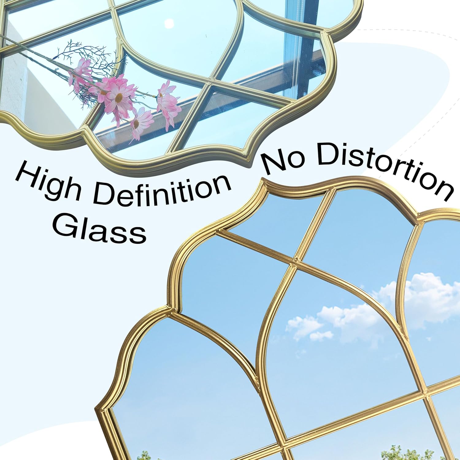 - Unique Design: This long cathedral mirror window features a Moroccan-inspired arch. Golden metal frame and windowpane make this grid mirror sturdy, which touch to kinds of wall home decor stlyes.