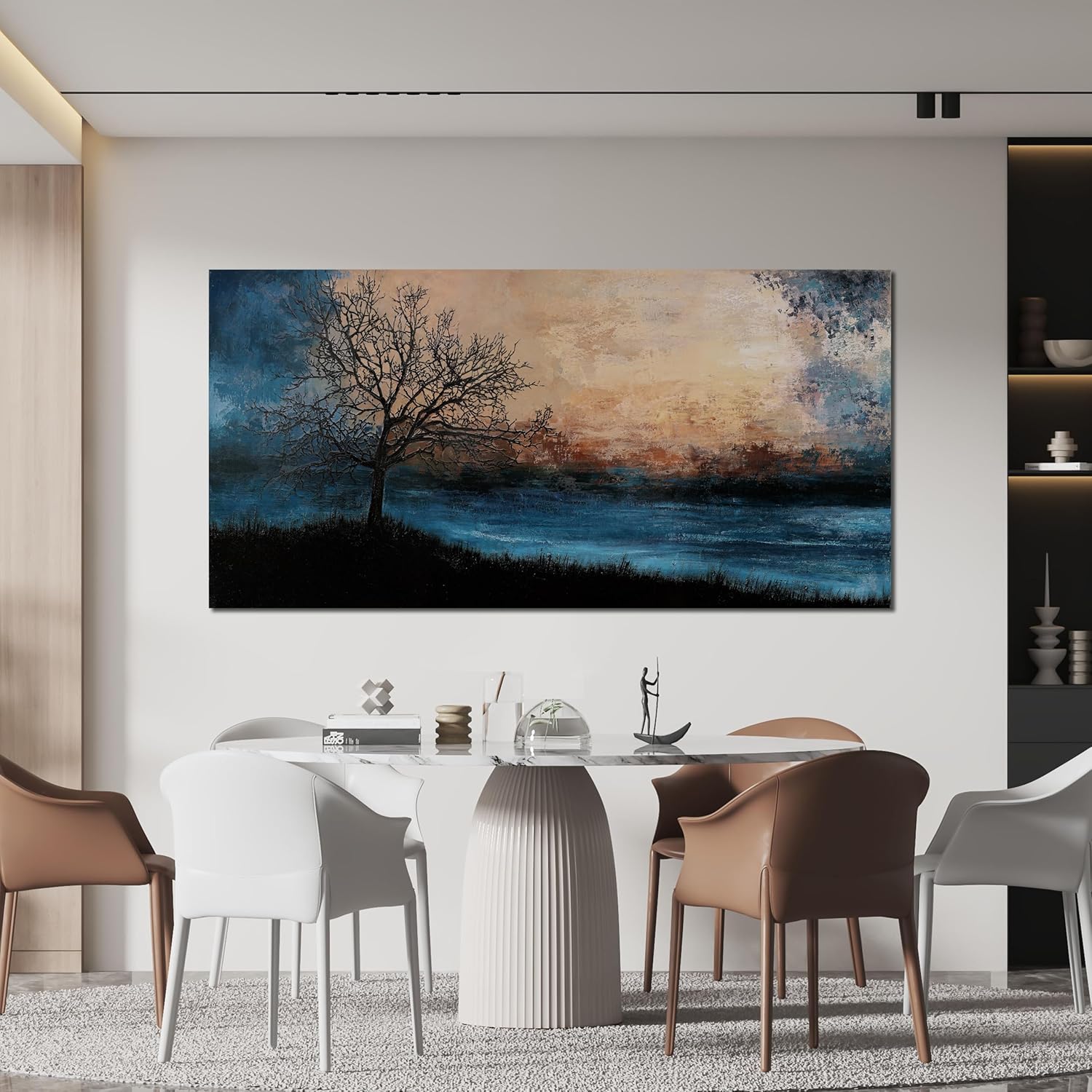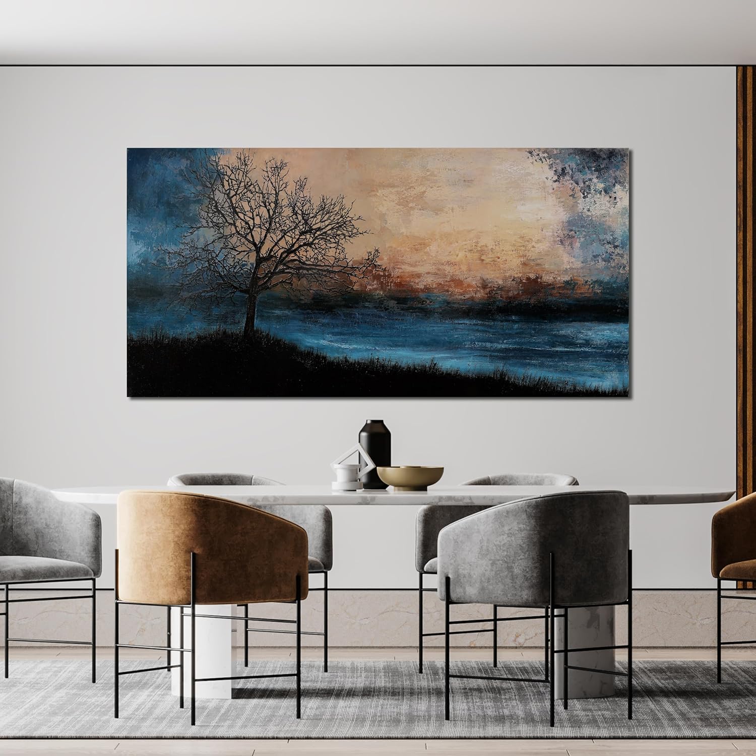 Canvas Wall Art for Living Room Artwork for Walls Black Blue Wall Art Decor Canvas Modern Art Wall Decor Nature Landscap Tree Wall Art Decor Prints Art Work for Home Office Kitchen Wall Decor 24"X48"