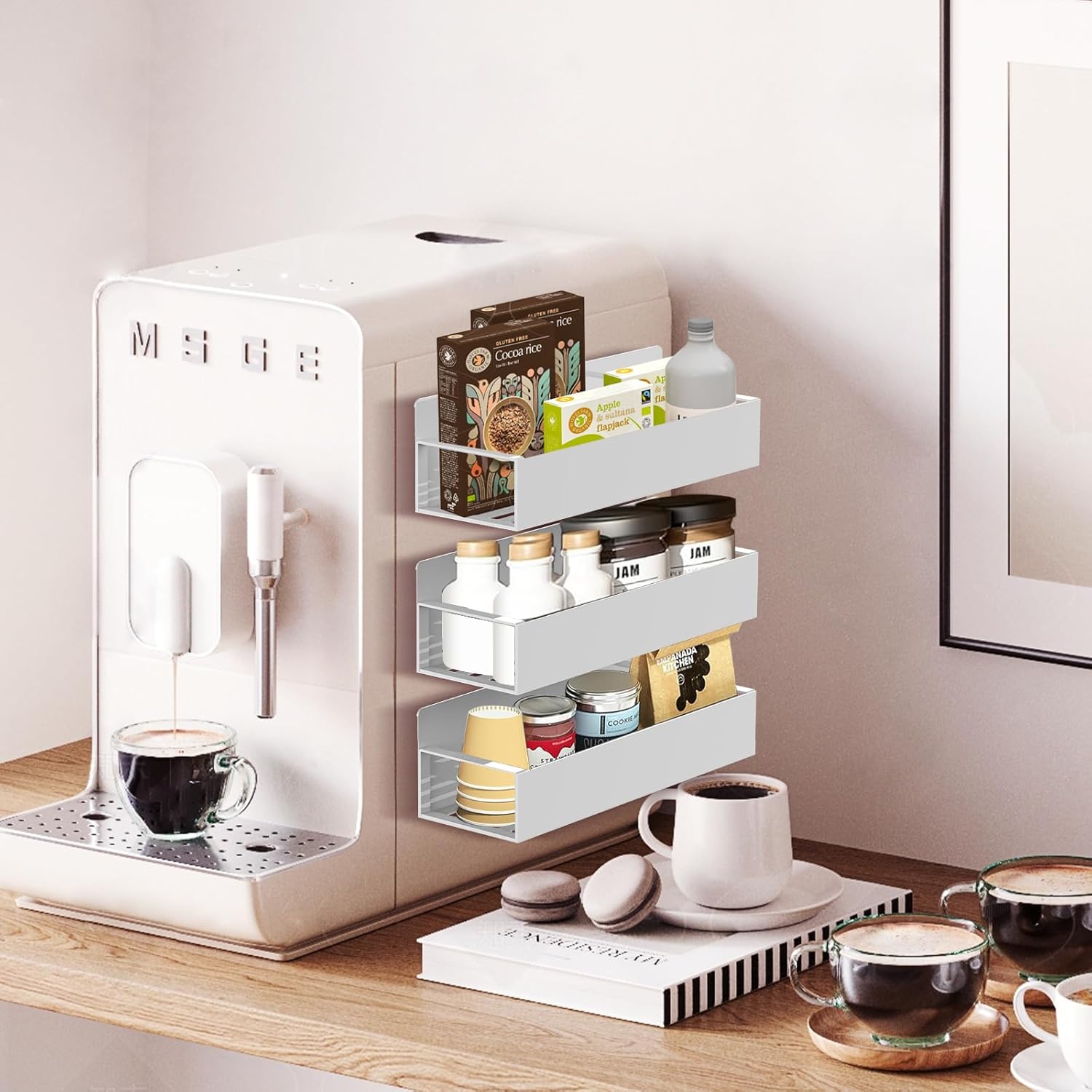 - 【Works extremely well! 】Makes using your most frequently used items close by. you will love this Magnetic Spice rack & organizer to be put on the refrigerator,you can space the 4 racks organizer however you like . It's right at your fingertips, no searching the cabinet. This is much more organized for your way of cooking.