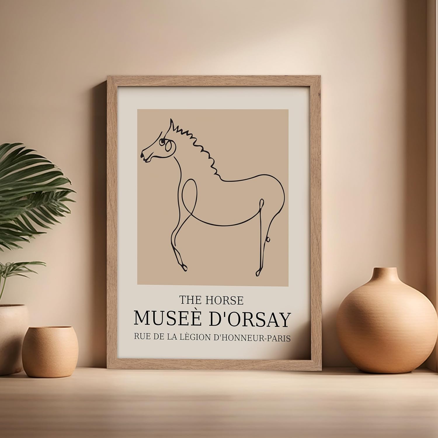 Poster Master Vintage Poster - Retro Minimalist Print - Gift for Artist, Friend - Horse, Line Drawing, Sketch, Abstract - Wall Decor for Living Room, Bedroom, 16x20 Beige Framed