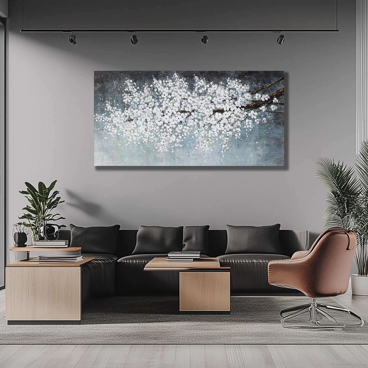 Belmrxne Large Floral Wall Art White and Black Wall Decor Aesthetic Paintings Trendy Artwork Modern Canvas Painting for Living Room Bedroom Dining Room Office Home Decor 30x60 inch