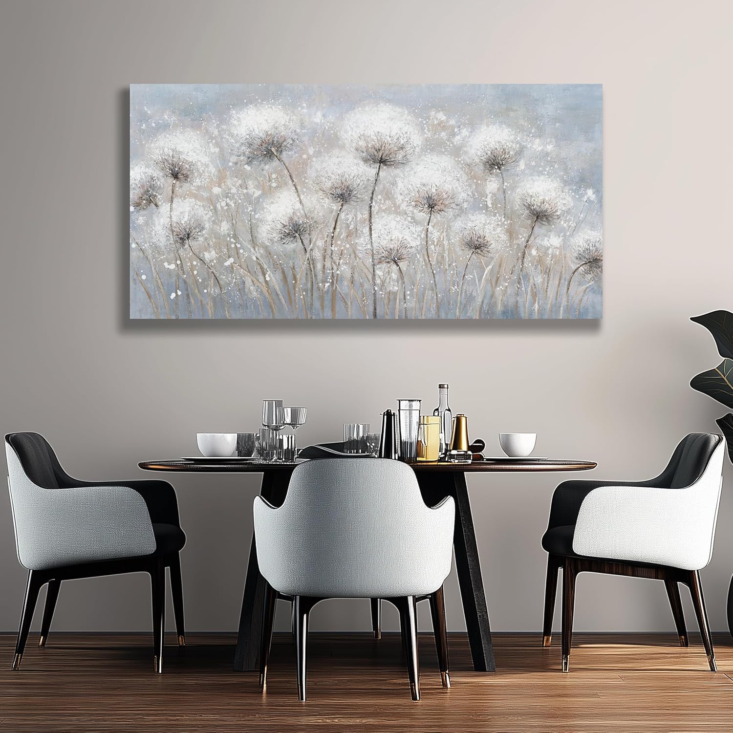 Belmrxne Floral Canvas Wall Art White Wall Decor Aesthetic Artwork Dandelion Canvas Painting for Living Room Bedroom Dining Room Office Home Decor 20x40 inch