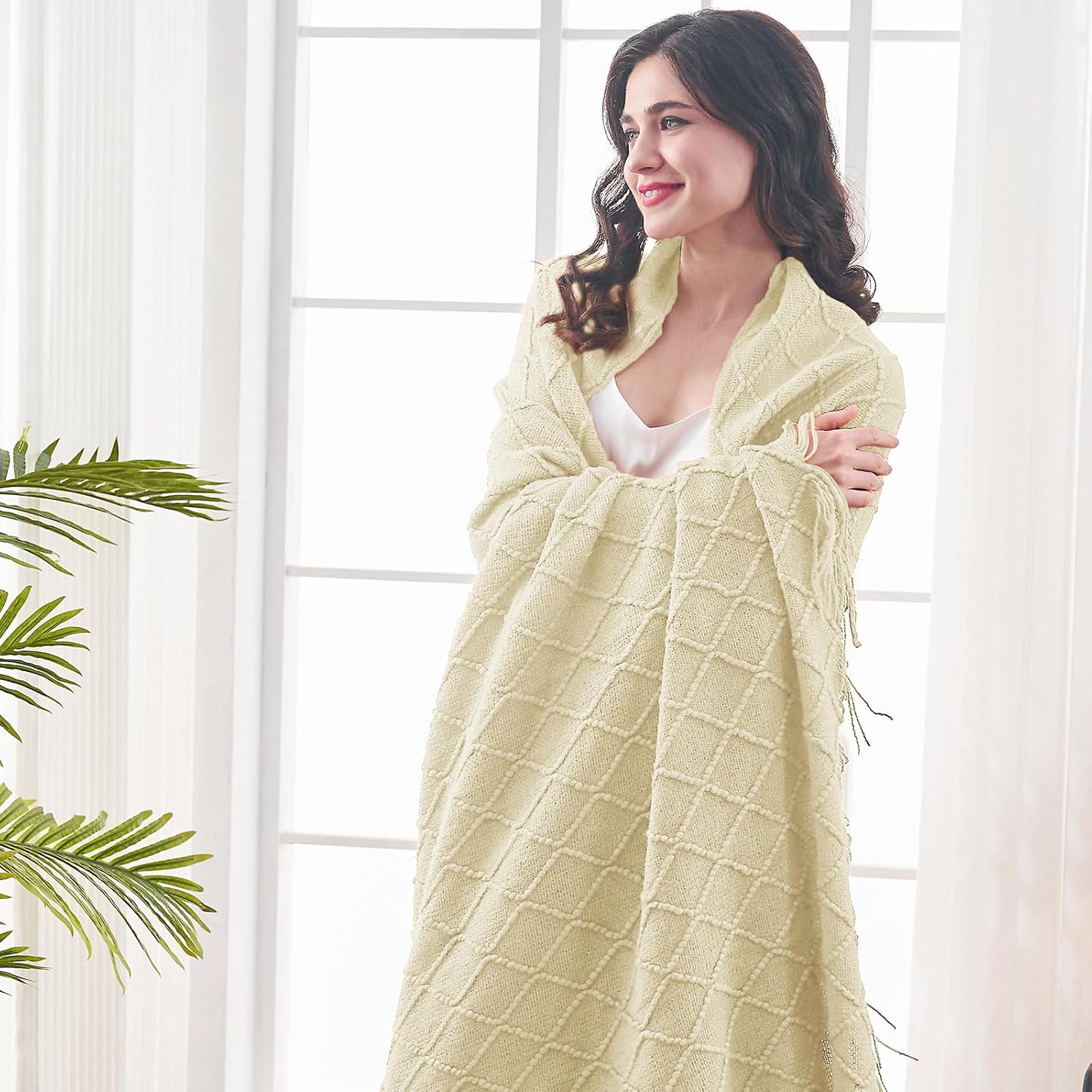 - 【GIFT IDEAS】: Special knitted diamond patterns add a unique accent to your room and people draping it as a shawl. Very suitable for tasteful homeowners. Throw blanket for women, classic but not too tacky as a housewarming gift. Tips: Due to different lighting, display settings, or resolutions, the difference in color happens. We are dying to show the color. To do so, one of the images shows the color difference in different lighting. Hope these instructions would help you to buy a throw.
