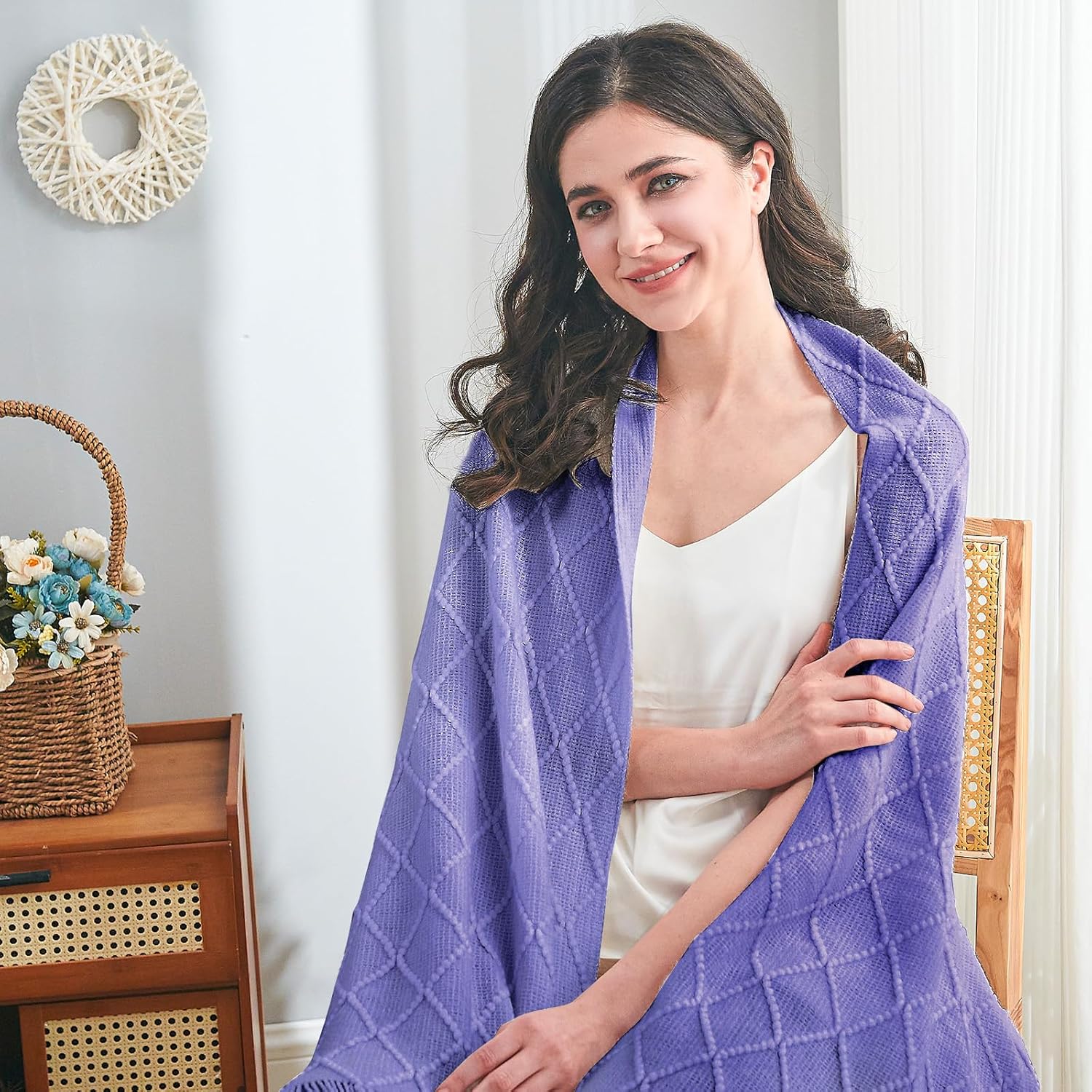 - 【GIFT IDEAS】: Special knitted diamond patterns add a unique accent to your room and people draping it as a shawl. Very suitable for tasteful homeowners. Throw blanket for women, classic but not too tacky as a housewarming gift. Tips: Due to different lighting, display settings, or resolutions, the difference in color happens. We are dying to show the color. To do so, one of the images shows the color difference in different lighting. Hope these instructions would help you to buy a throw.