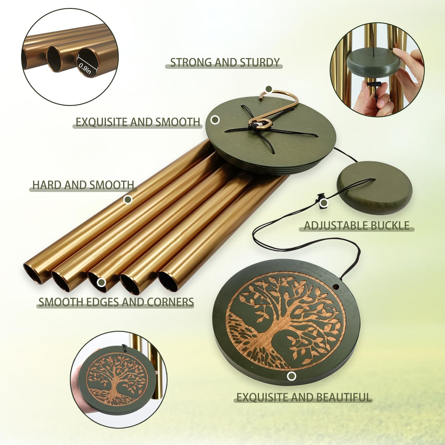 - Soothing Tones for Healing Moments--5 hand-tuned aluminum tubes deliver rich, full-bodied tones, professionally calibrated for superior musicality. The heavy-duty wood striker and thick tubing walls ensure long-lasting deep tones that create a serene atmosphere in gardens, patios, or memorial spaces.