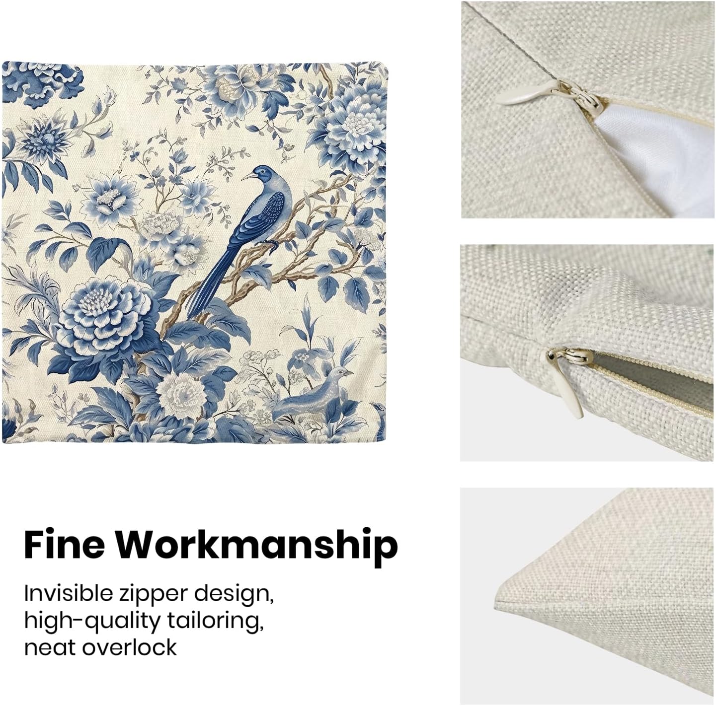 - 【Square Pillow Covers Size】 Chinoiserie flower birds pillow case set includes 2 pcs of farmhouse couch pillow covers (NO Pillow). Home decor farmhouse pillow covers measures 20x20 inch/ 50x50 cm. All the floral decor throw pillow covers have a hidden zipper. It is easy to insert or remove the pillow core to replace the spring pillowcase. Easy to clean and wash, sturdy and not easy to damage.