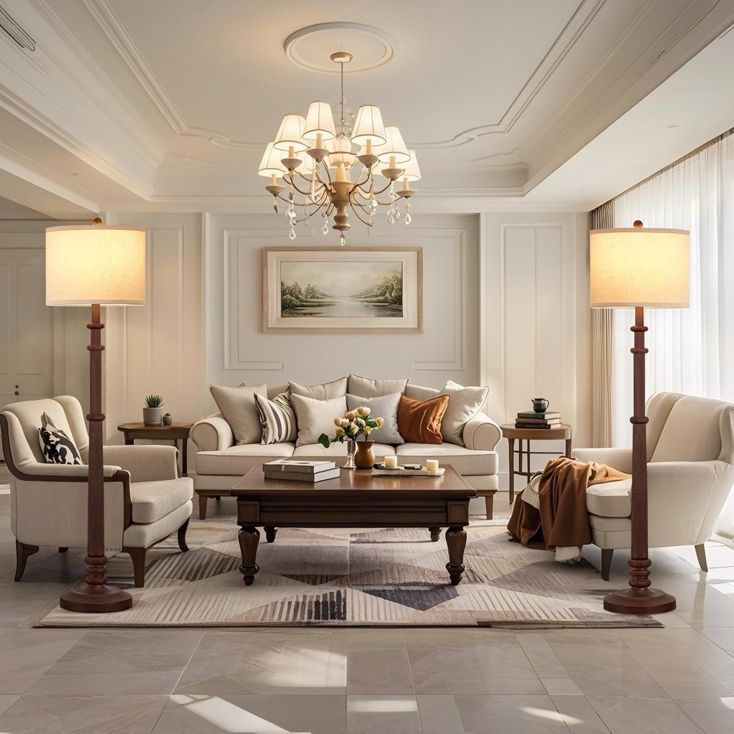 - 𝐕𝐞𝐫𝐬𝐚𝐭𝐢𝐥𝐞 𝐑𝐞𝐬𝐢𝐧 𝐅𝐥𝐨𝐨𝐫 𝐋𝐚𝐦𝐩 - Discover versatility with our farmhouse floor lamp, expertly molded from resin for lasting beauty and reliability. Its classic design, complemented by a crisp white fabric drum shade, seamlessly integrates into any decor scheme from modern to traditional. Ideal for creating a cozy atmosphere in bedrooms, living areas, or reading corners. Simple assembly ensures hassle-free setup