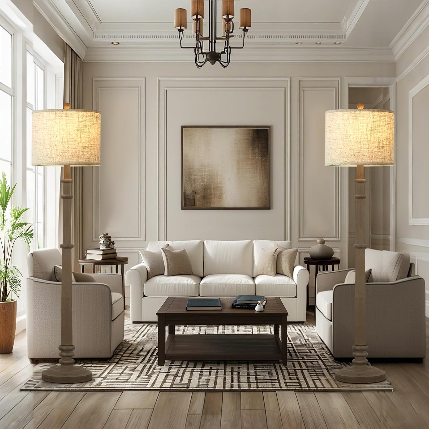 Floor Lamps for Living Room - 60" Resin Farmhouse Floor Lamp with 3 Color Temperatures - Vintage Standing Lamp Reading Light with Linen Shade Retro Tall Lamp for Bedroom Office, Grey