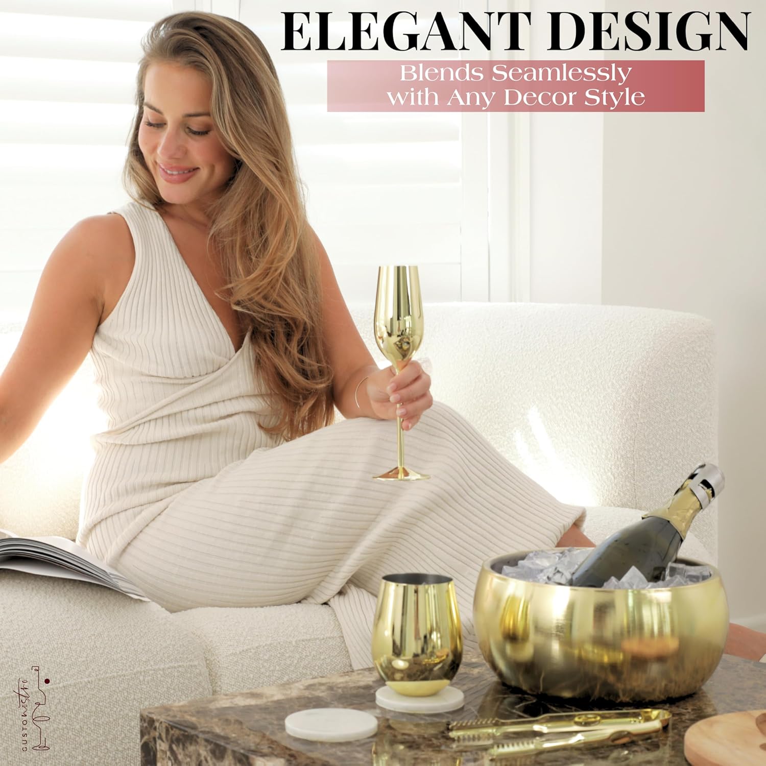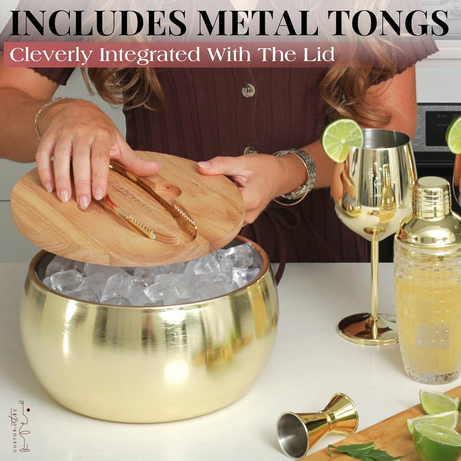 Gusto Nostro 4.1L Insulated Ice Bucket with Lid and Tongs, Double Wall Stainless Steel Ice Bucket Large, BPA Free Ice Bucket for Cocktail Bar, Keeps Champagne, Wine, Beer Chill for Parties (Gold)