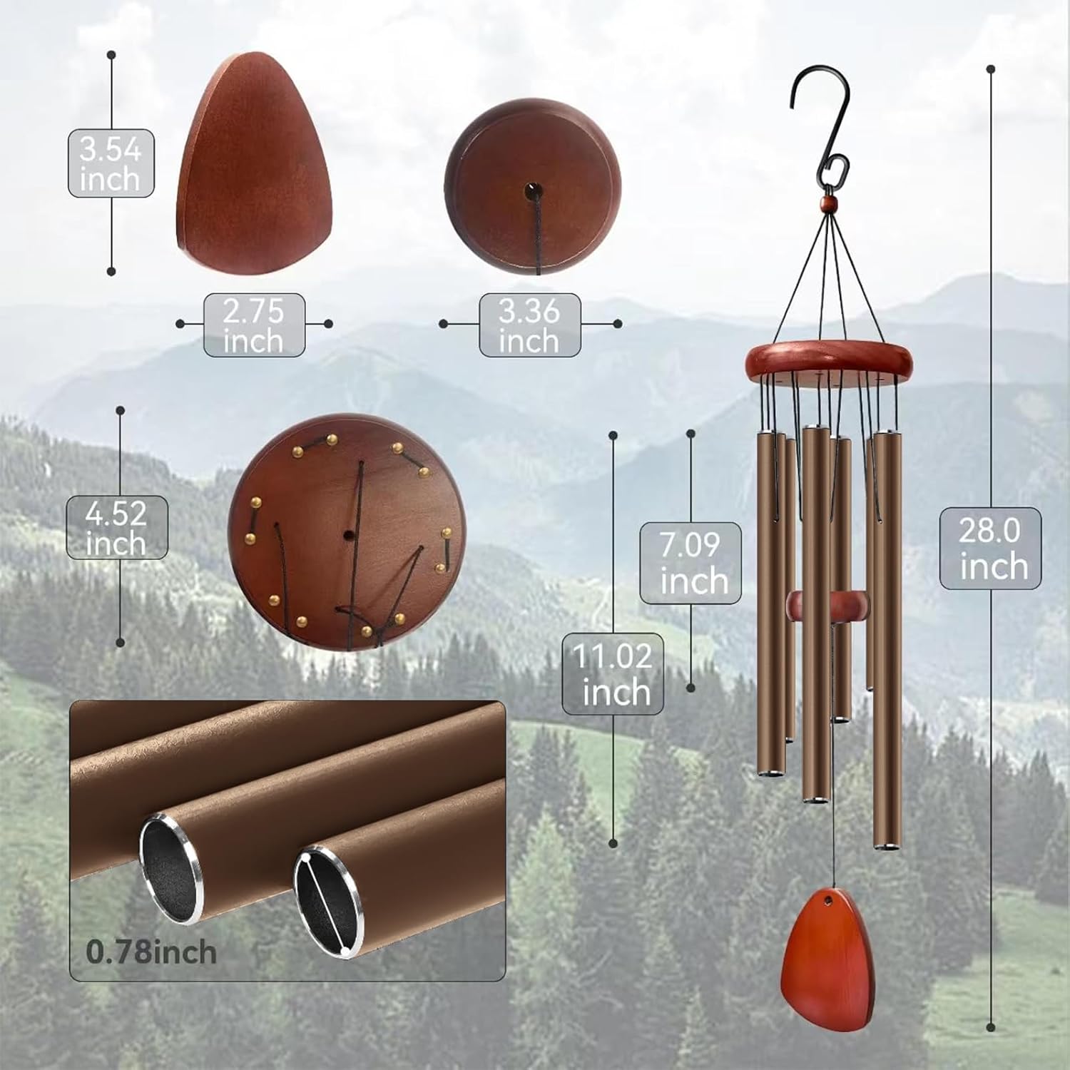 28" Wind Chime for Mothers Day, Decorative Wind Chimes for Outside, Memorial Windchimes Remembrance Gift for Women Mom Grandma, Metal Wind Chimes Outdoor Decor for Garden Patio Zen(Coffee)