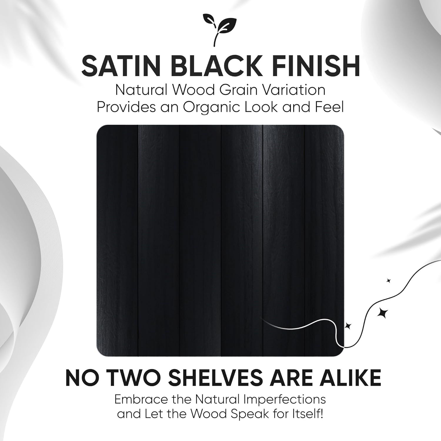 Homeforia Black Floating Shelf 18 inch, High End Solid Real Wood 18inch Bathroom Floating Shelves for Wall Mounted, Black Wooden 18in Floating Shelves, Heavy Duty Bracket, 18 X 6.5 X 1.75 in, Set of 2