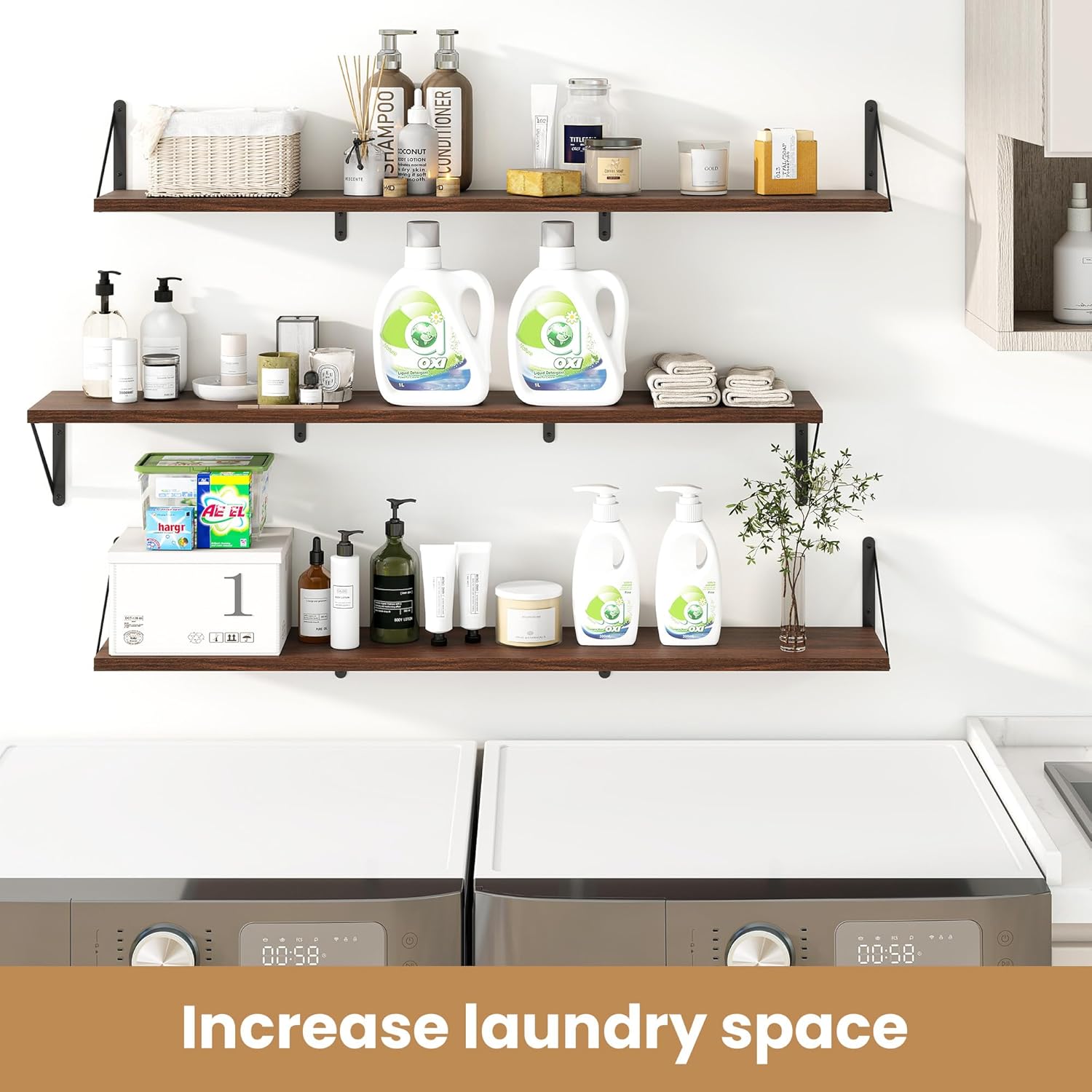 Heimlove 48 Inch Large Floating Bookshelves Set of 3,Wall Mounted Bookshelves,Heavy Duty Wooden Shelves for Living Room,Bedroom,Kitchen,Laundry Room Storage & Decor-Walnut Color