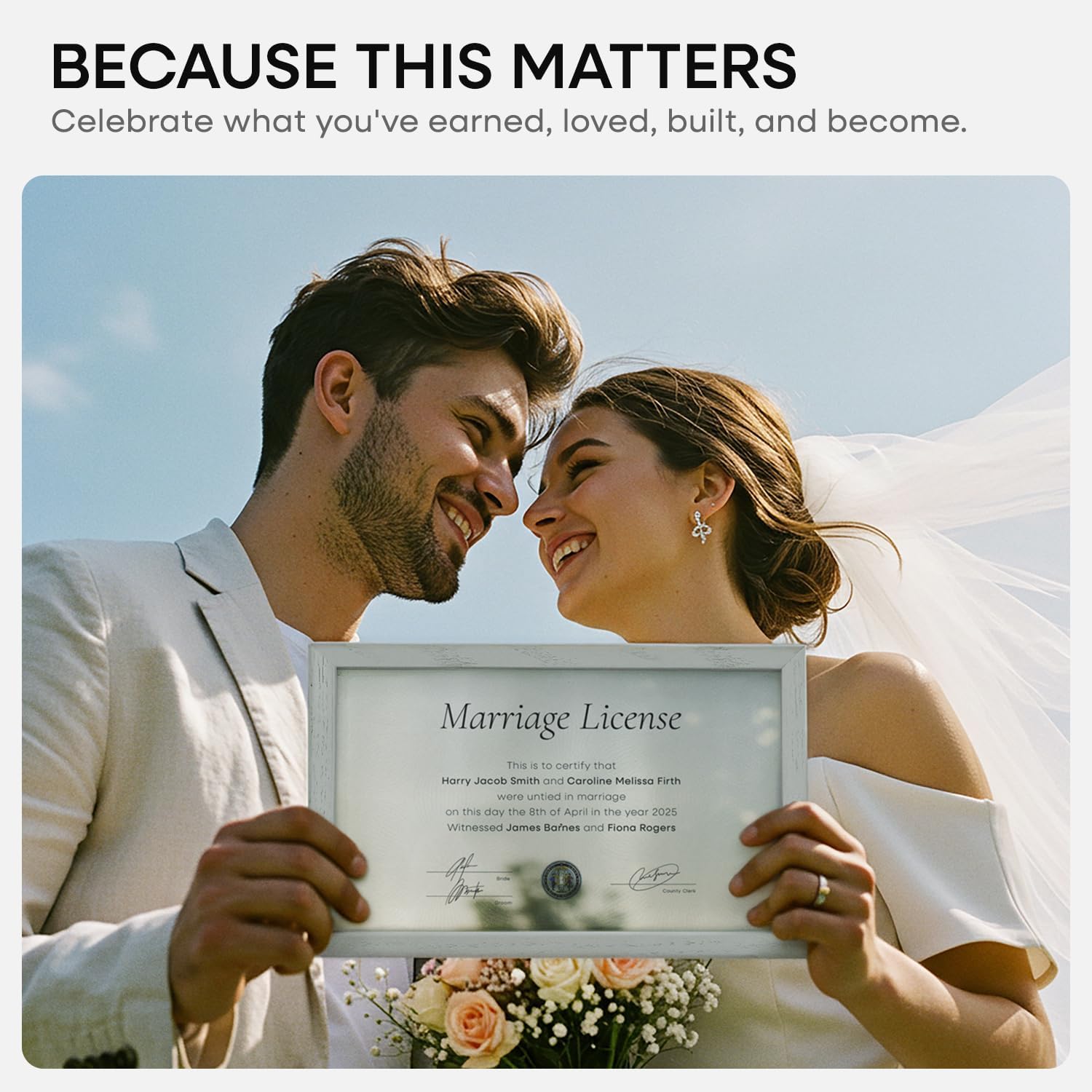 Homeforia 8.5x14 Marriage License Frame White, High End Oak 8.5x14 Certificate White Wood Frames, 8.5by14 Wooden Frame for Wall & Tabletop, 8.5 by 14 Picture Frames, Tempered Glass, Wall Kit, Set of 1