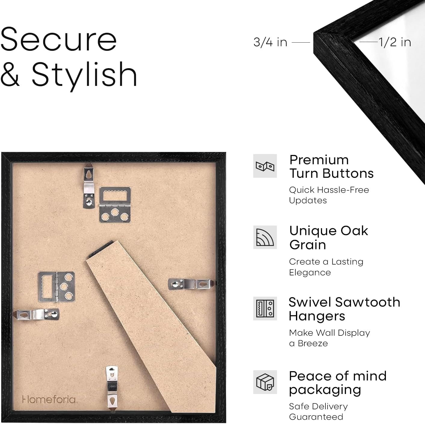 Homeforia 8.5x11 Diploma Frame Black Wood, High End Oak 8.5 x 11 Certificate Frames, 11x8.5 Black Document Frames for Wall or Tabletop, 8.5 by 11 Award Wooden Frame, Tempered Glass, Wall Kit, Set of 1
