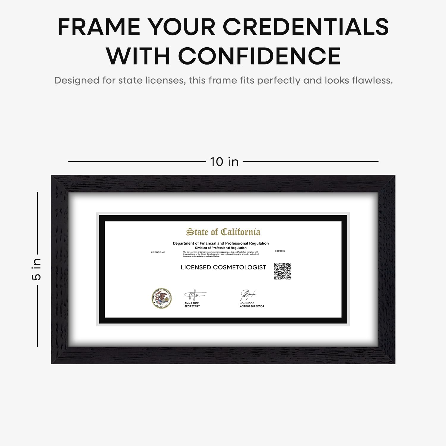 Homeforia 5x10 Business License Frame Black, High End Oak 5 x 10 Black Wood Document Certificate Frame with Mat 4x9, 10x5 Wooden Picture Frames for Wall or Tabletop, Tempered Glass, Wall Kit, Set of 1