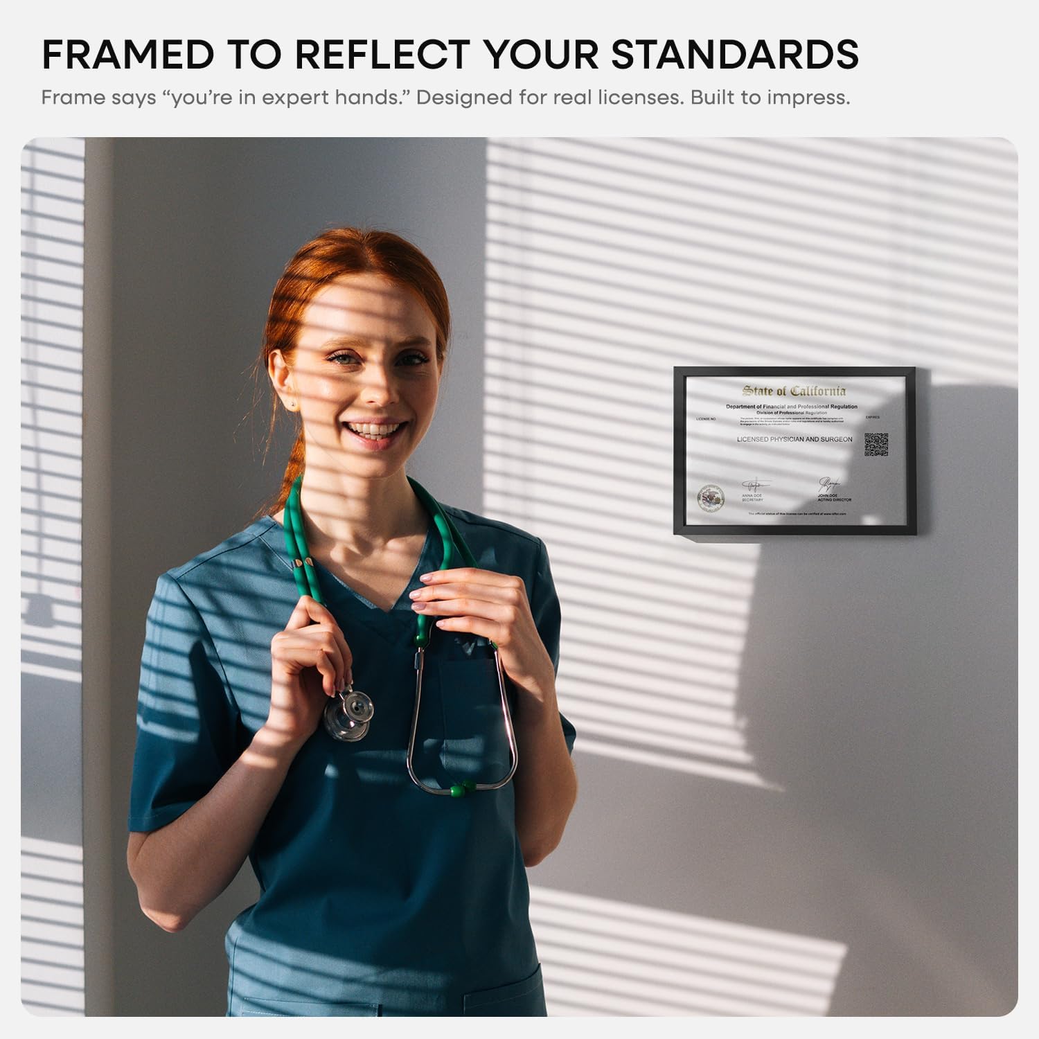 Homeforia 5.5 x 8.5 Business License Frame Black, High End Metal 5.5x8.5 Certificate Frames, 8.5x5.5 Document Frames for Wall or Tabletop, 5.5 by 8.5 Picture Frames, Tempered Glass, Wall Kit, Set of 1