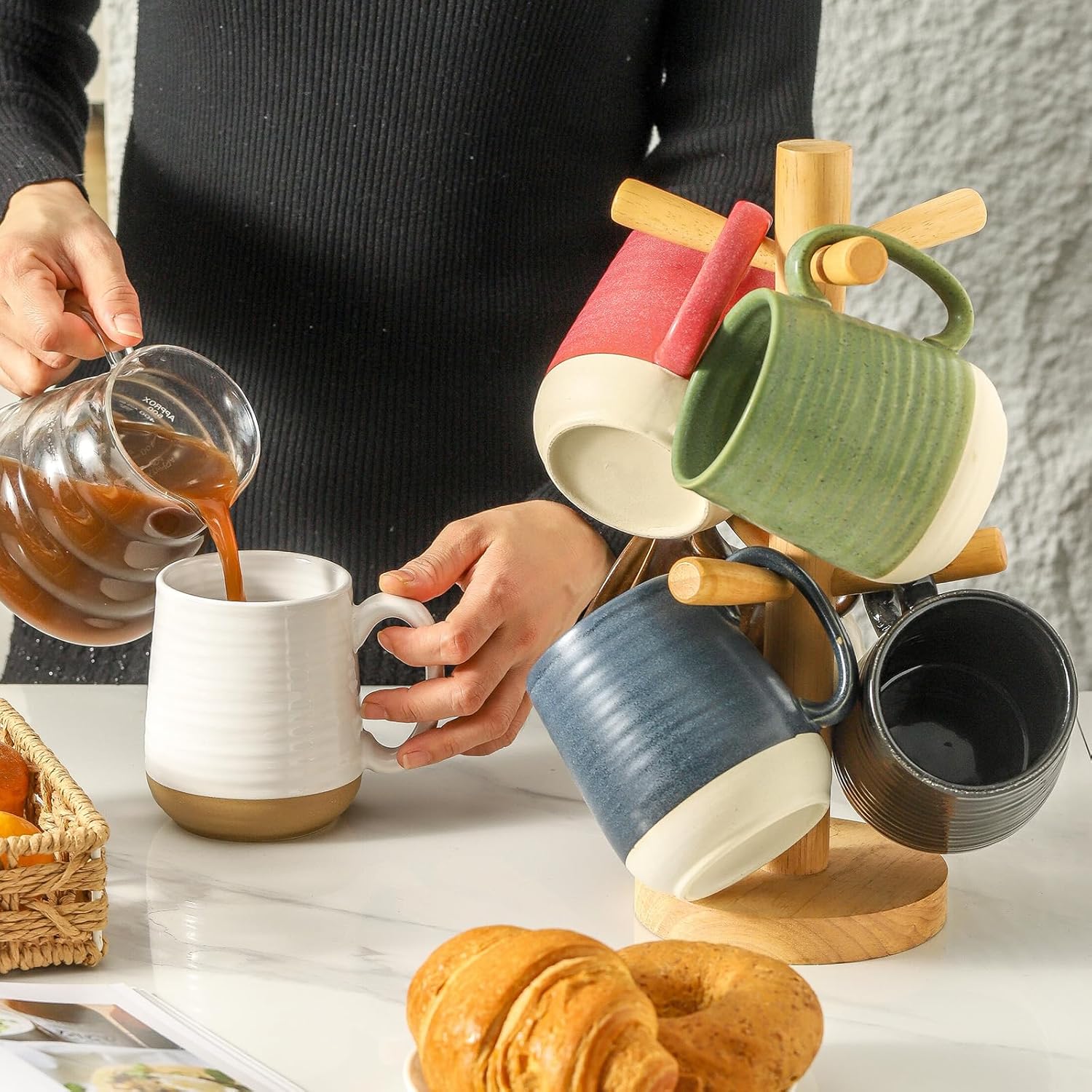 Hasense Porcelain Coffee Mugs Set of 6, 15 Ounce Large Ceramic Coffee Cups Set with Handle for Latte, Tea, Cocoa and Hot Chocolate, Colorful Coffee Mugs for Men and Women, Microwave Safe