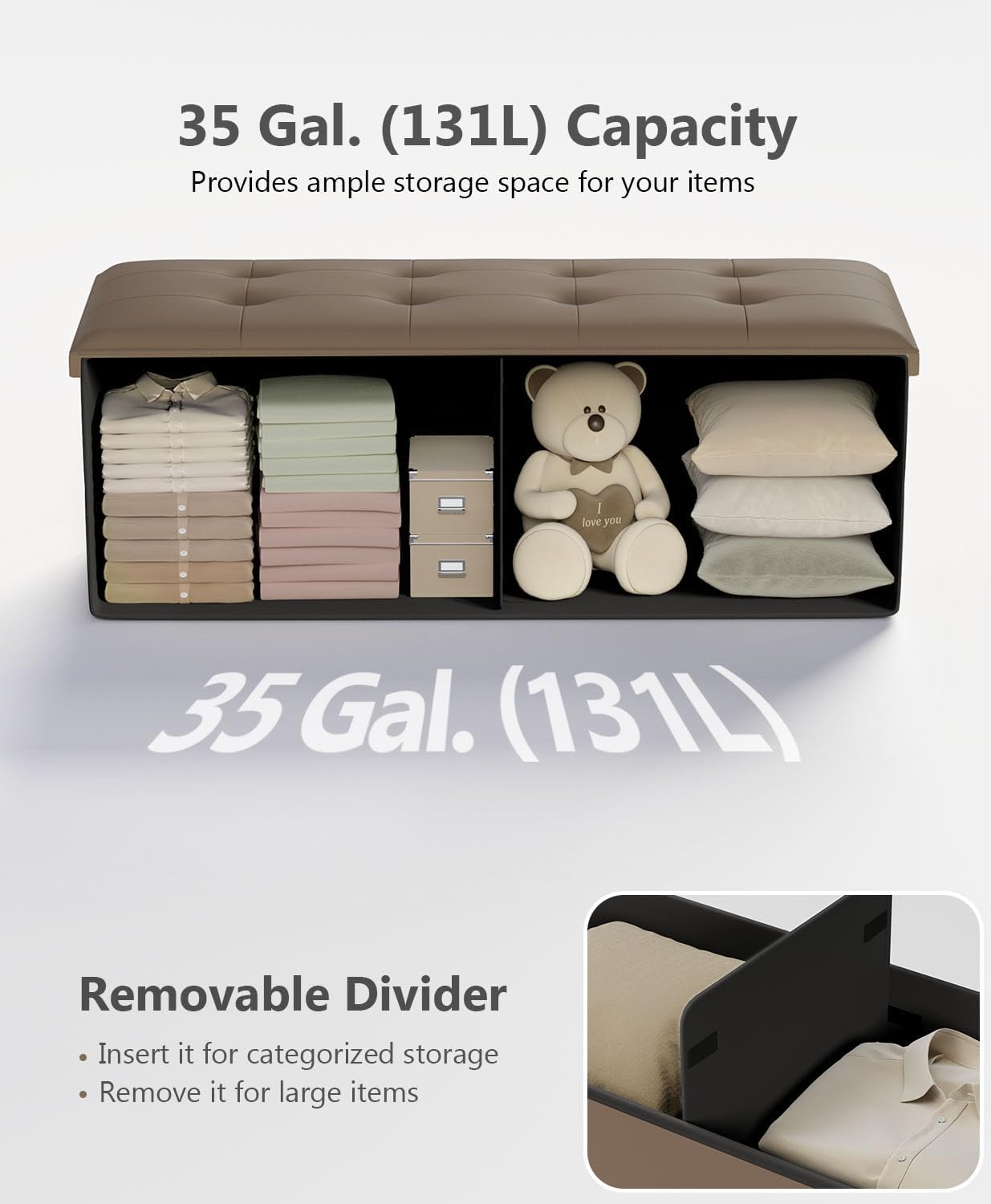 - [Comfortable Seating] Filled with high-density foam and covered in PU, this storage bench provides a soft, supportive, and breathable seat for optimal comfort