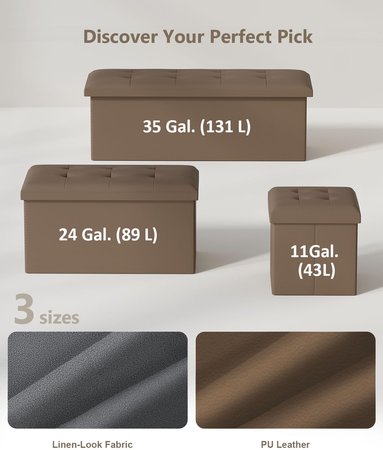 Storage Ottoman Bench, Folding Ottoman Foot Rest, End of Bed Bench,Storage Chest, for Living Room, Bedroom, Hallway, Entryway, Holds up to 700 lb (BROWN1, 43")