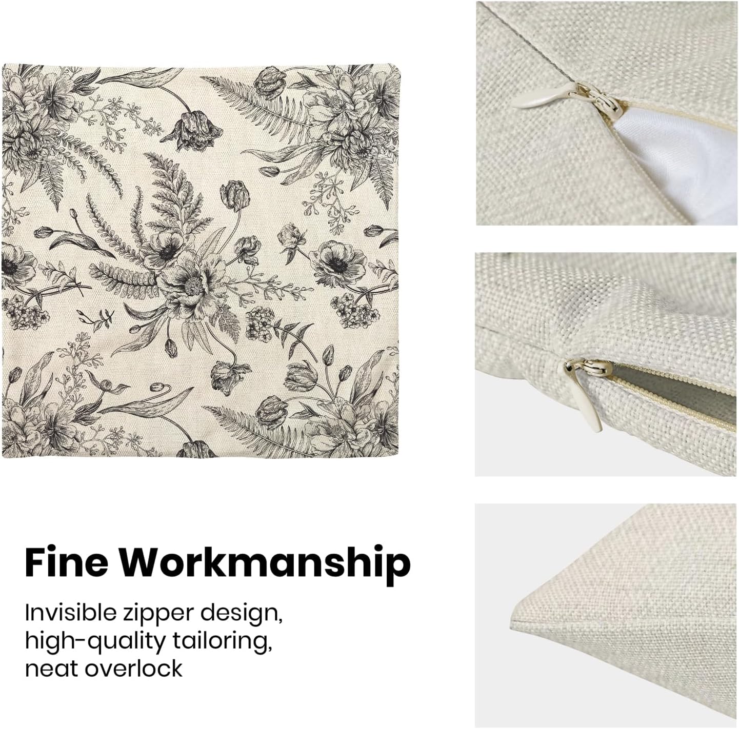 - 【Spring Pillow Covers】 Our Chinoiserie floral throw pillow covers 24x24 inch are made of excellent breathable polyester cotton fabric. The Black and White floral decorative pillow covers is sturdy, soft and skin-friendly. The plant outdoor pillow covers adopt exquisite edging technology and four sides of our floral pillow covers are sewn firmly, which is not easy to open the line.