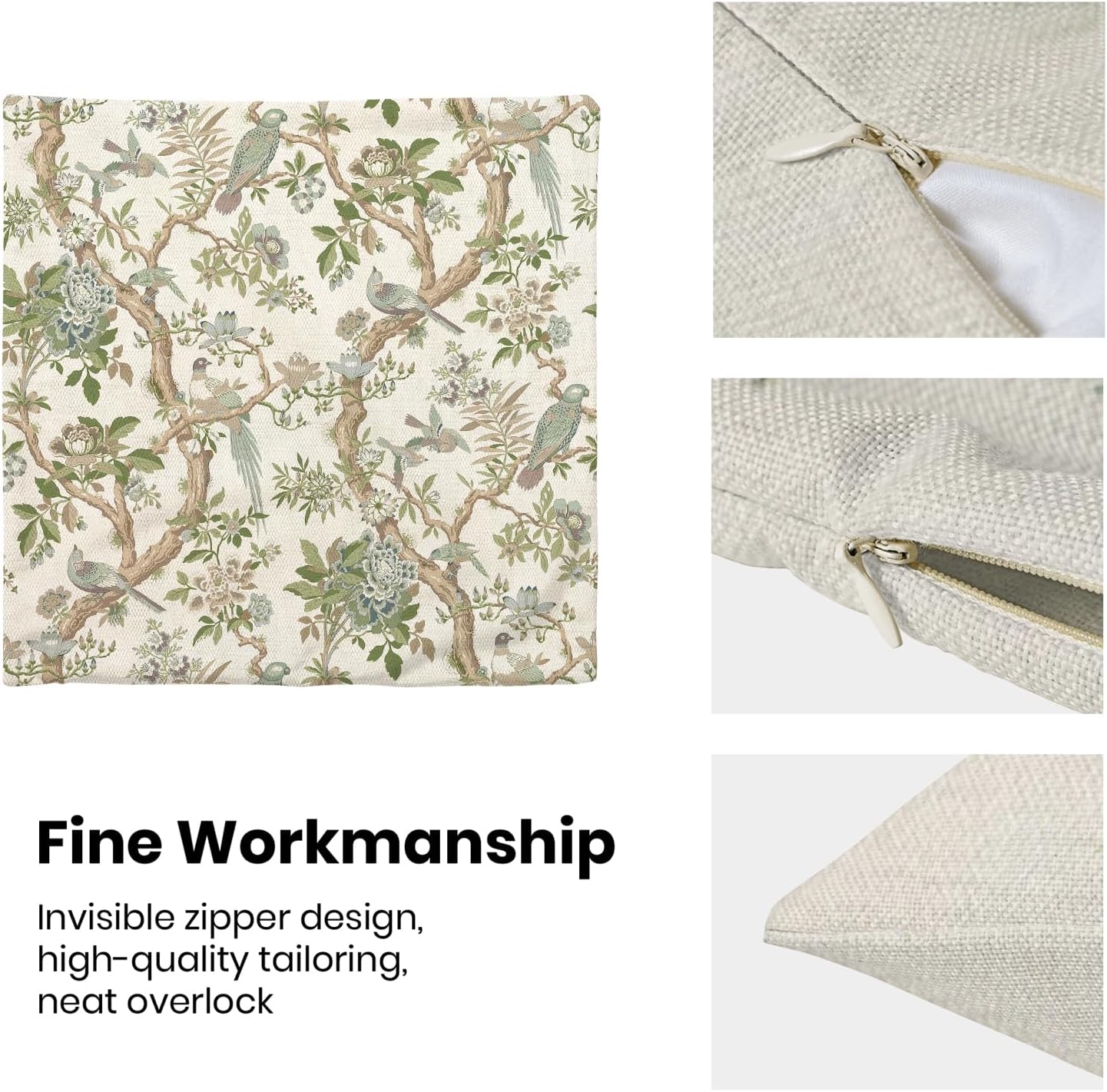 - 【Square Pillow Covers Size】 Chinoiserie flower birds pillow case set includes 2 pcs of farmhouse couch pillow covers (NO Pillow). Home decor farmhouse pillow covers measures 20x20 inch/ 50x50 cm. All the floral decor throw pillow covers have a hidden zipper. It is easy to insert or remove the pillow core to replace the spring pillowcase. Easy to clean and wash, sturdy and not easy to damage.