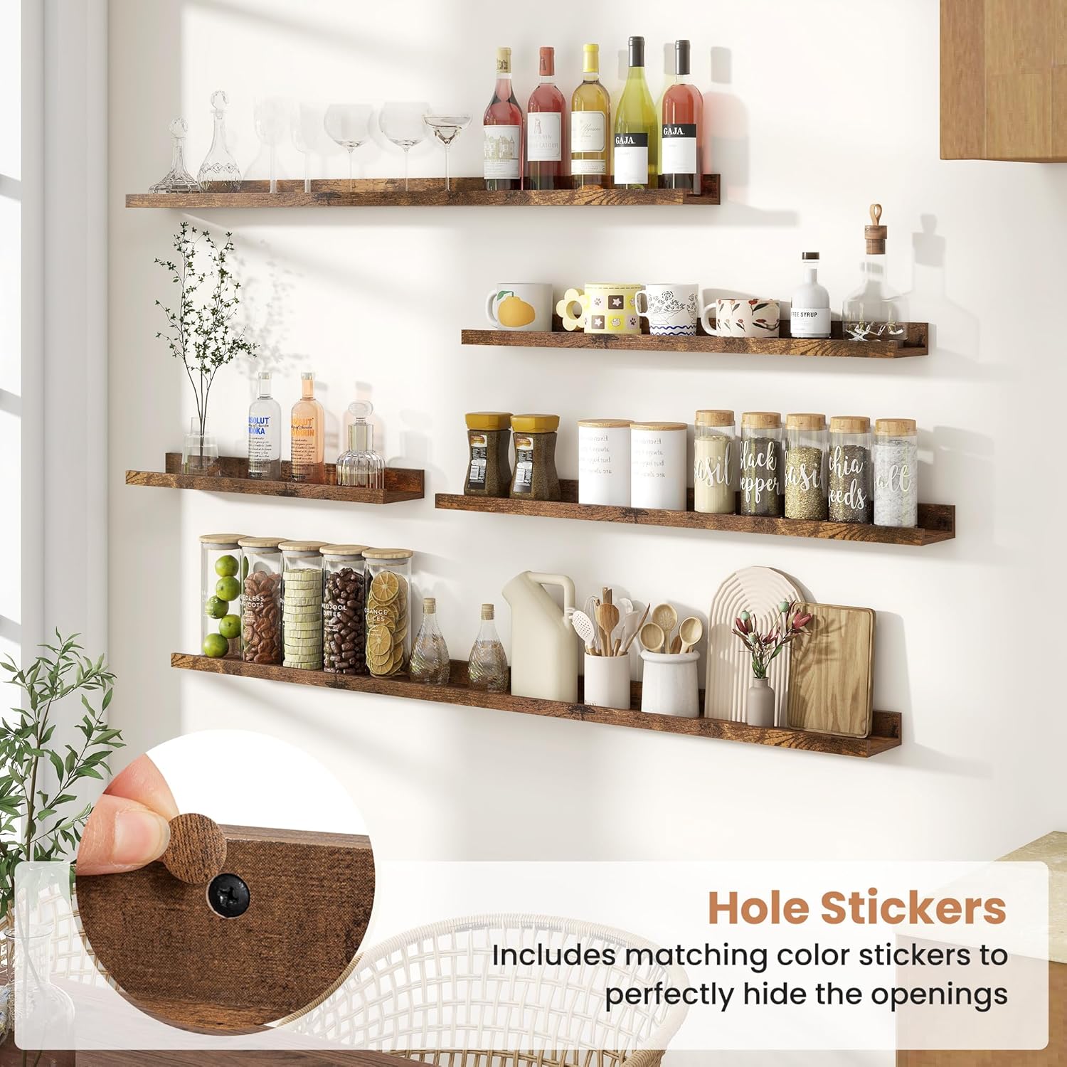 - Enhanced Stability Design: Featuring a secure lip at the front, these floating shelves prevent items from slipping or falling, confidently supporting up to 65 lbs, making these MDF wood shelves ideal for showcasing cherished items.