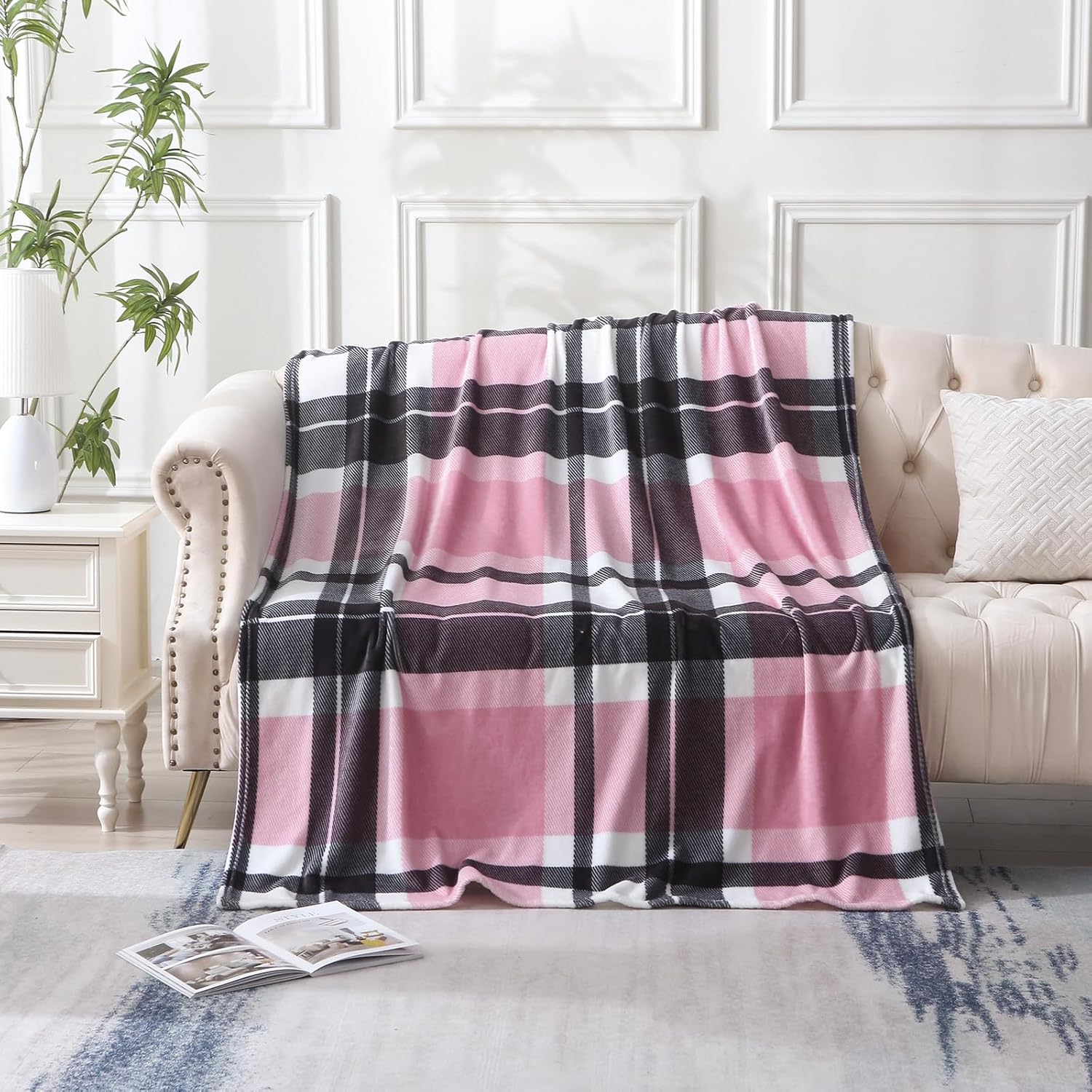 MERRYLIFE Pink Plaid Throw Blanket Decorative Fleece Throw | Ultra-Plush Colorful | Couch Blanket Travel Lap | Home Gift Use(50" 60",Pink Plaid)