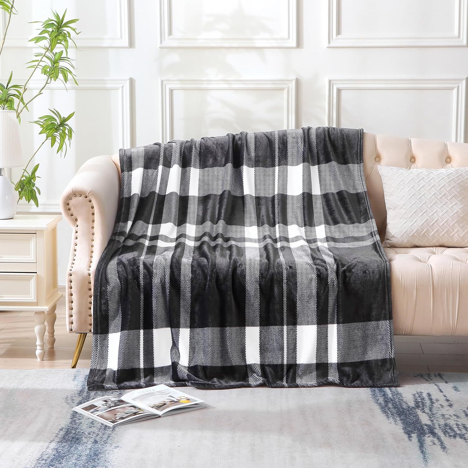 MERRYLIFE Black and White Plaid Throw Blanket Decorative Fleece Throw | Ultra-Plush Colorful | Couch Blanket Travel Lap | Home Gift Use(50" 60",Black White)