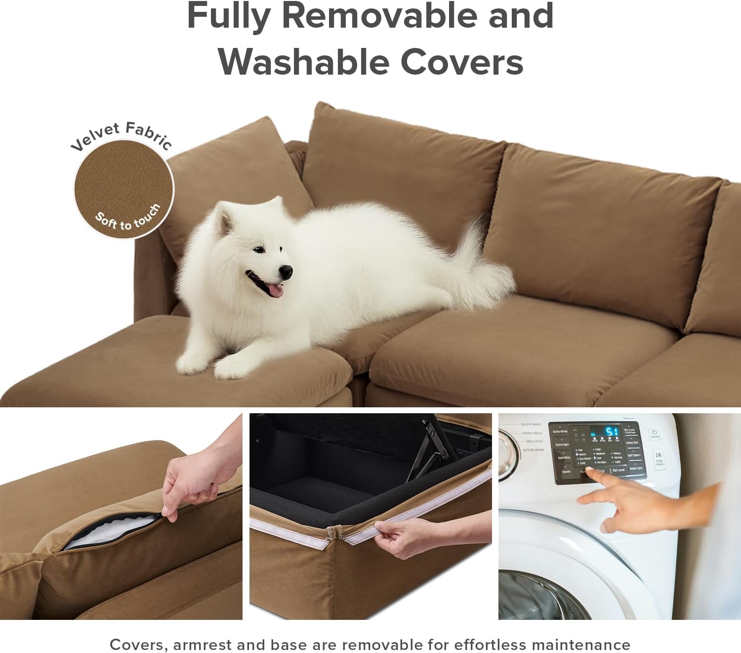 mopio Oversized Modular Sectional Sofa with Fully Removable Covers and Storage, Convertible U & L Shaped Sectionals, Modern Cloud Couch with Ottoman Chaise (Hazelnut Velvet, 7 Seats, U)