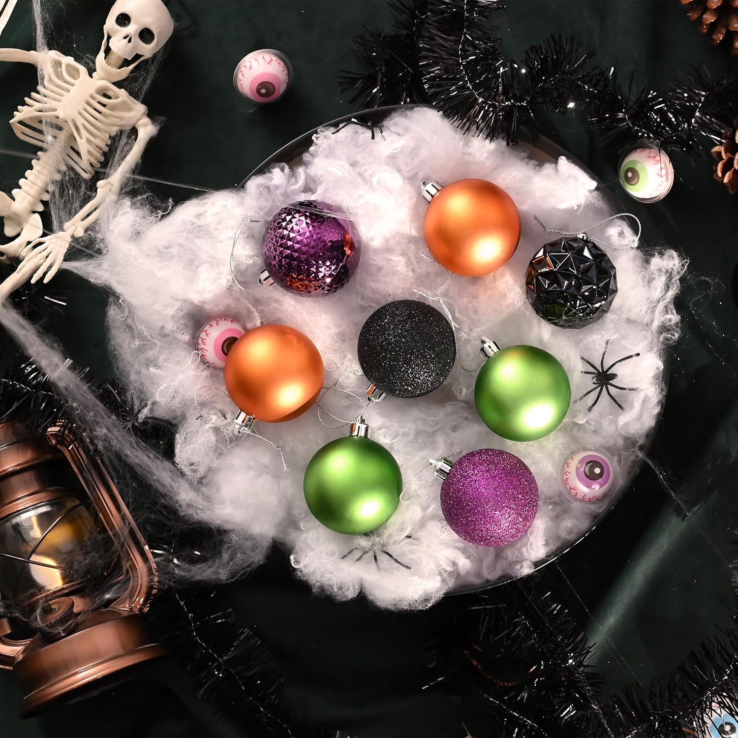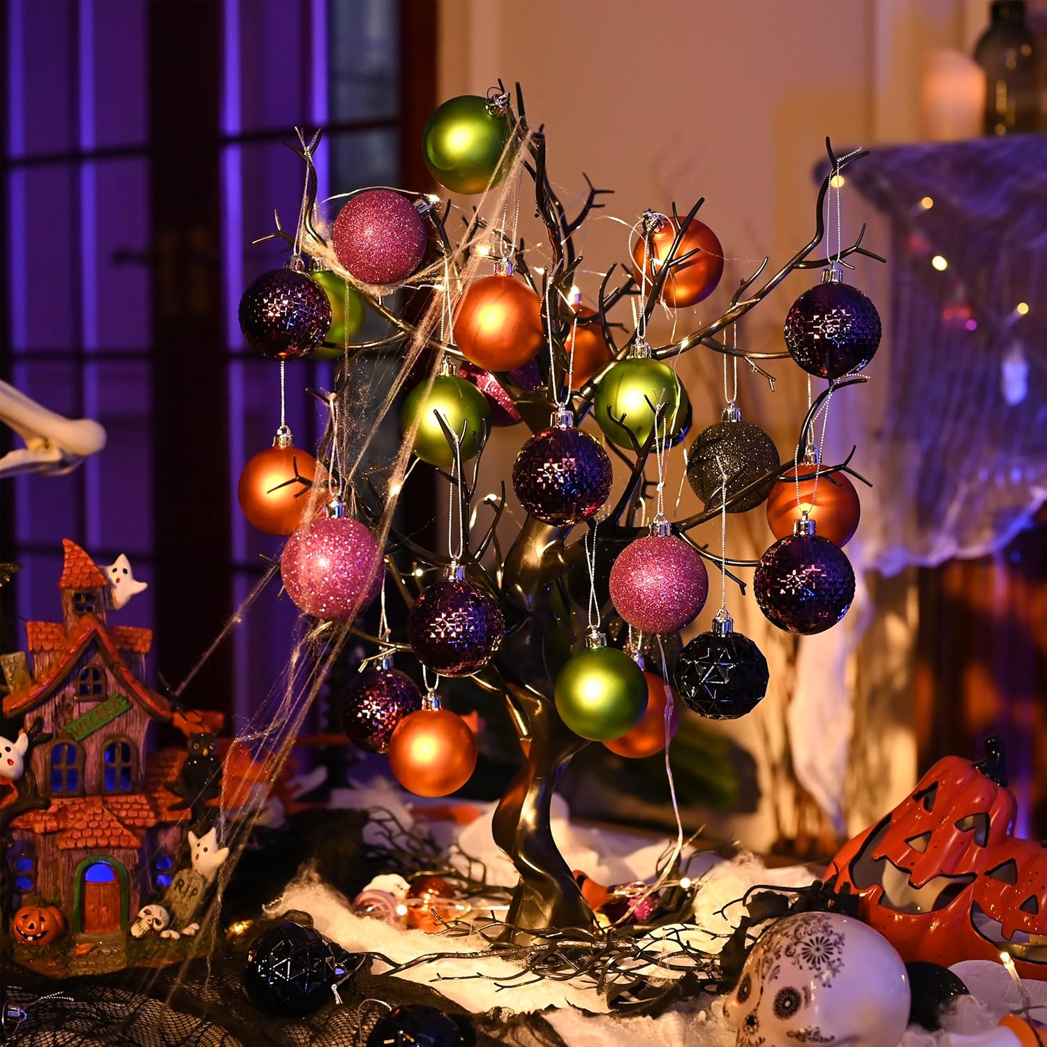 Valery Madelyn Christmas Tree Decorations Ornament Set for Fall Halloween, 50ct 2 Inches Orange Purple Black Shatterproof Christmas Ball Ornaments Hanging Xmas Holiday Party Decor