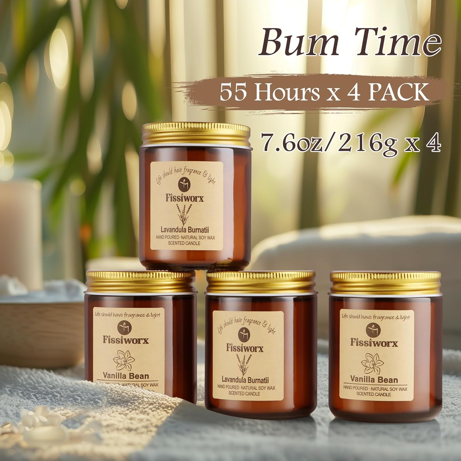 - Candles For Home Scented - Enjoy up to 60 hours of continuous burn time , proudly made with 100% natural soy wax that burns evenly. Our fragrances are paraben-free, phthalate-free, and never tested on animals. Fissiworx scents gently enhance spaces rather than overpower them, ideal for those sensitive to scents.