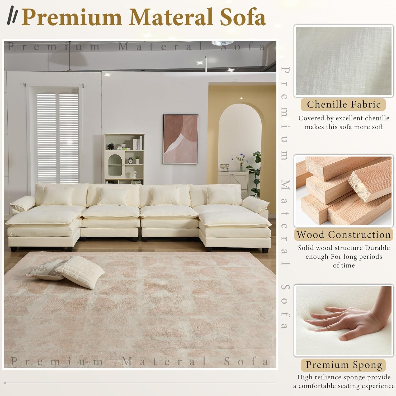 URRED Modular Sectional Sofa Comfy Cloud Couch, Modern Chenille Sofa Sleeper Deep Seat Couches with Ottoman/Pillows for Living Room (White, 154'' - U Shape)