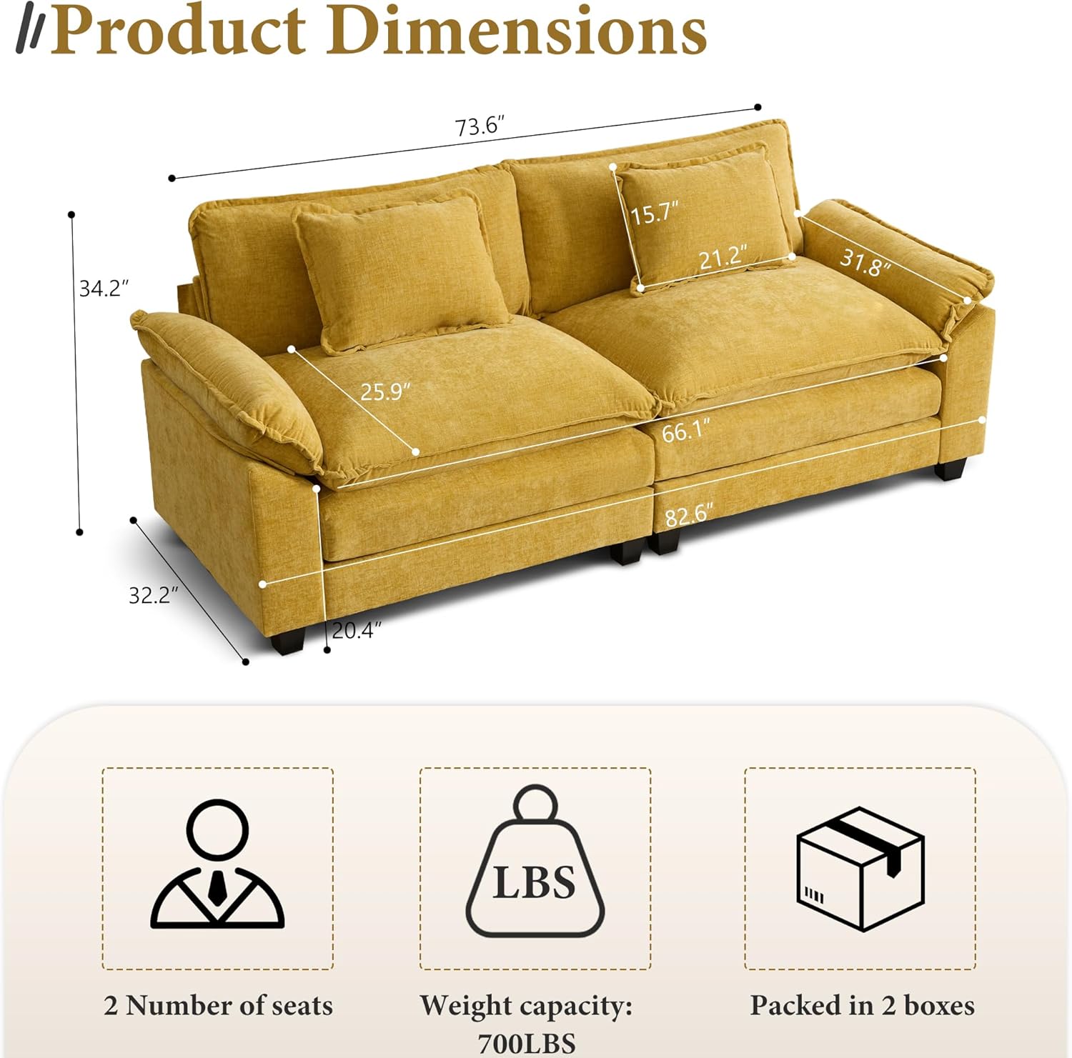 URRED Modular Sectional Sofa Comfy Cloud Couch, Modern Chenille Loveseat Sofa Sleeper Deep Seat Couches with Pillows for Living Room (Yellow, 82.6'')