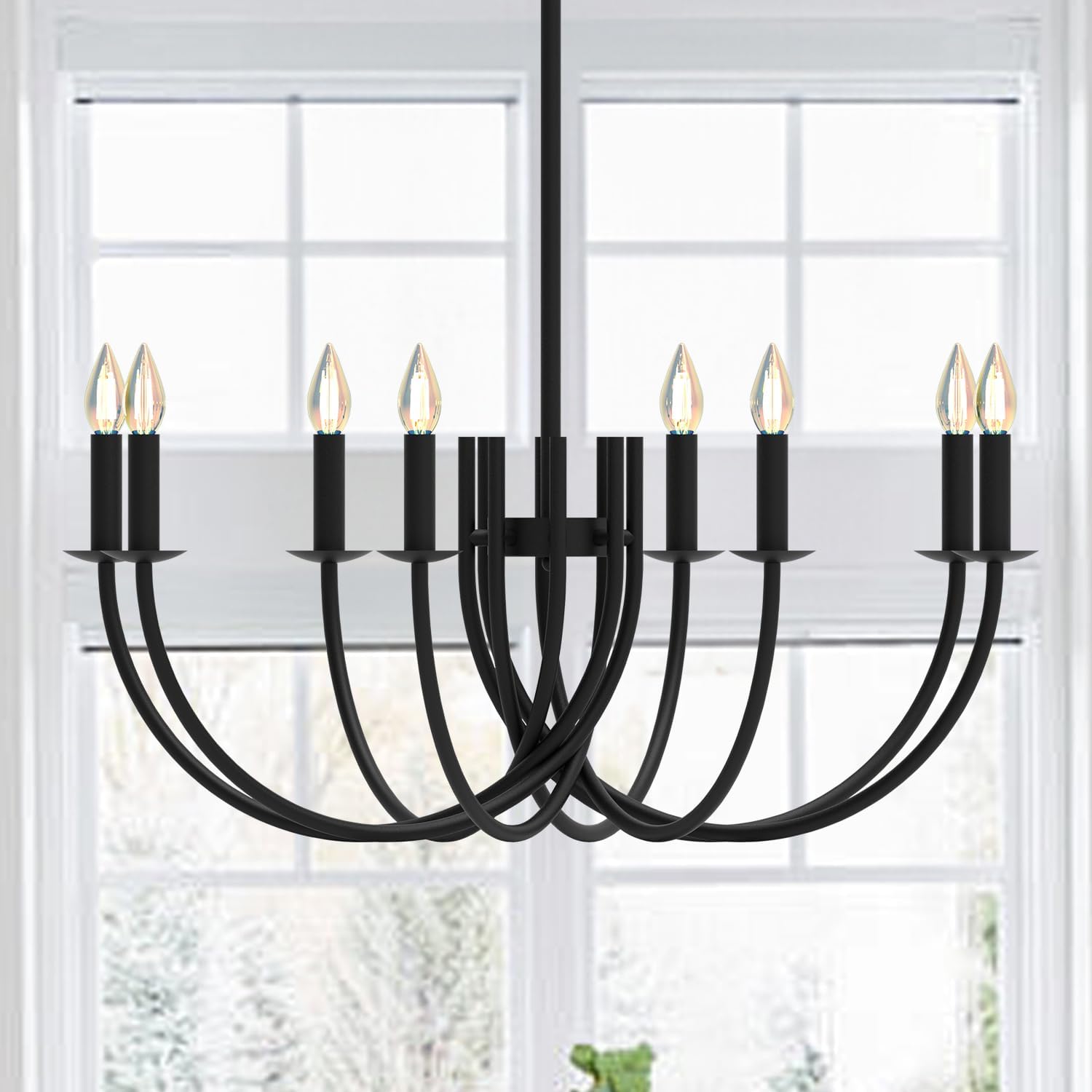 Large Black Chandeliers Light Fixture, Modern Candle Pendant Lighting, Round LED Hanging Lamp Ceiling for Bedroom Living Room Dining Room Kitchen Island Farmhouse (Black-C 8Lights)