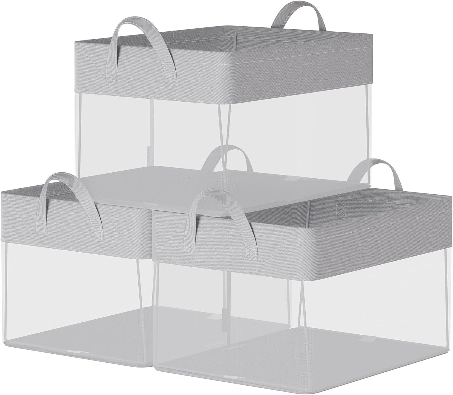 SONGMICS Storage Bins Set of 3, Medium Fabric Storage Baskets, Foldable Organizer with Transparent Nylon Mesh, 15.7 x 11.8 x 9.8 Inches, Handles, for Bedroom, Living Room, Dove Gray URFB940G01