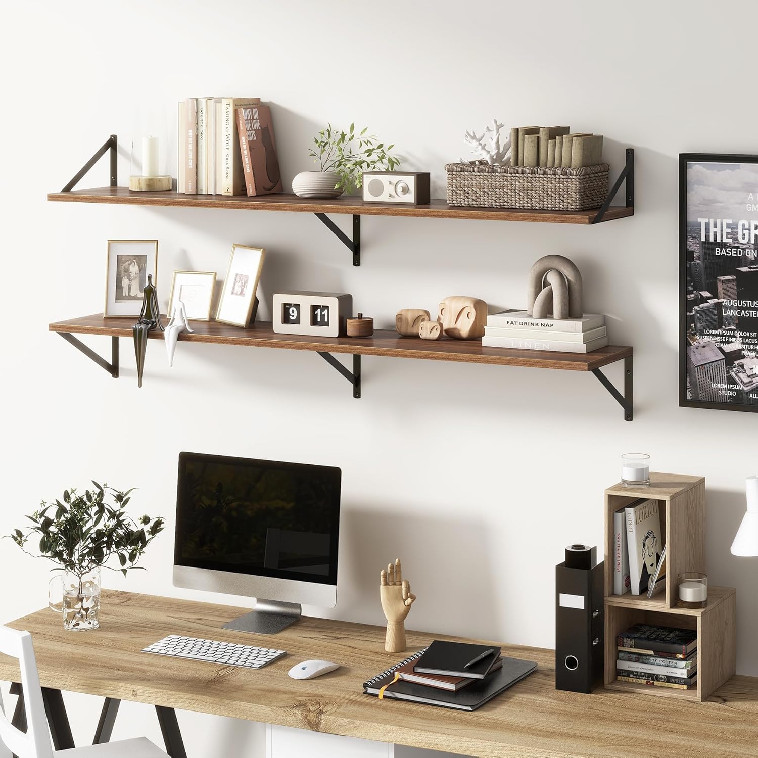 Floating Shelves 55 Inch Long, 10" Deep Floating Shelves, Walnut Wall Shelves 55 x 10, Set of 2, Wide Large Display Storage Shelves for Bathroom, Living Room, Rustic Wood Shelves with Brackets