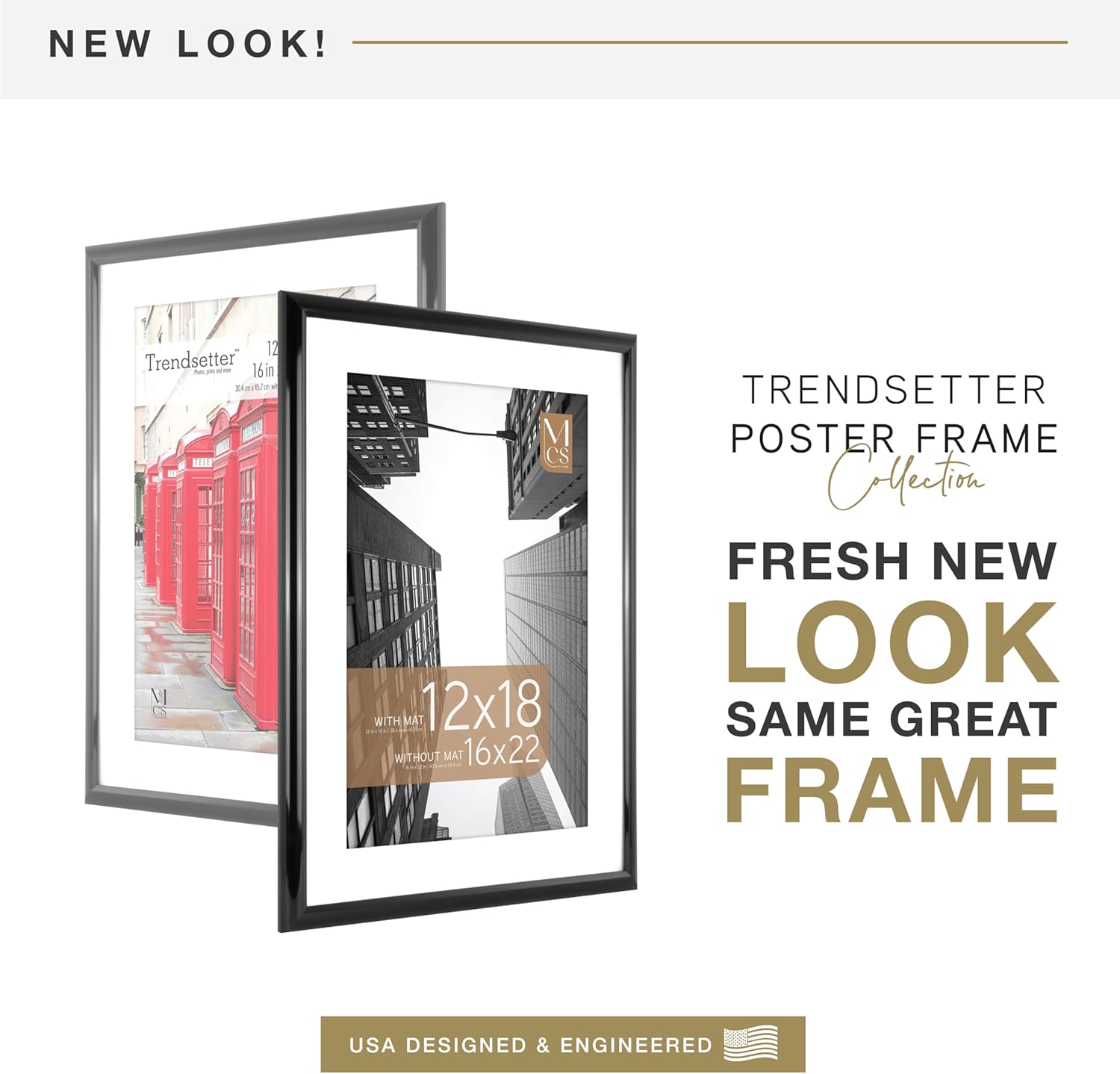 - DIMENSIONS: Each large wall picture frame features a sleek black profile & holds a 16 x 22-inch poster without the mat, or use the included mat for 12 x 18-inch display.
