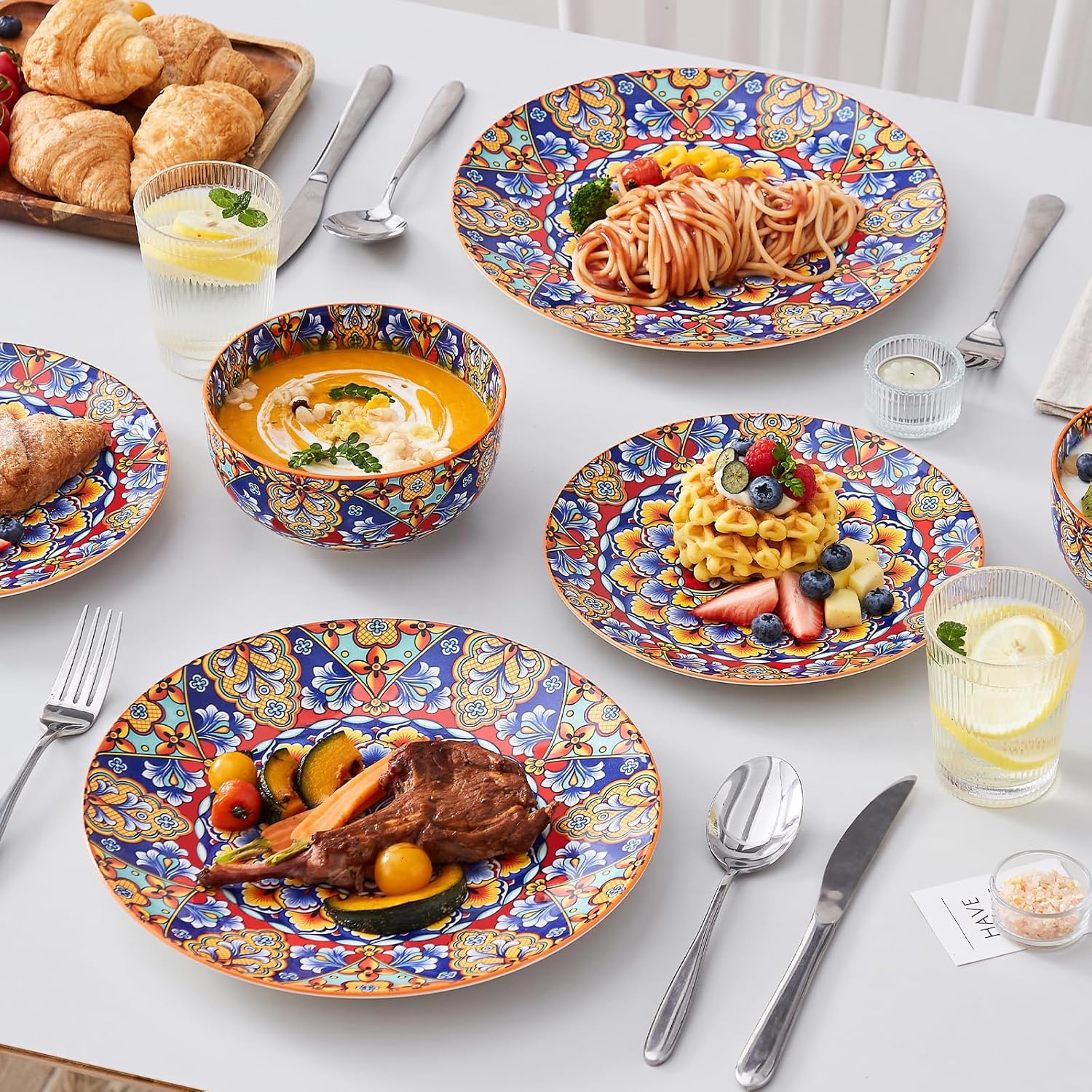 vancasso 12 Pieces Dinnerware Sets, Orange Plates and Bowls Set, Porcelain Dishes Set for 4, Microwave and Dishwasher Safe, Scratch Resistant, Bohemian Style Dining Ware Service for 4, Series SIMI