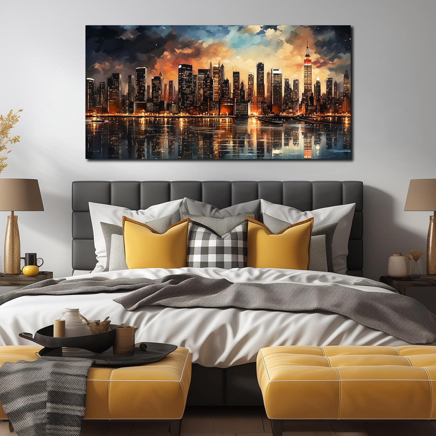 New York Skyline Wall Art for Office,Modern Living Room Wall Paintings City Wall Decor for Bedroom 29 x 59 Inch