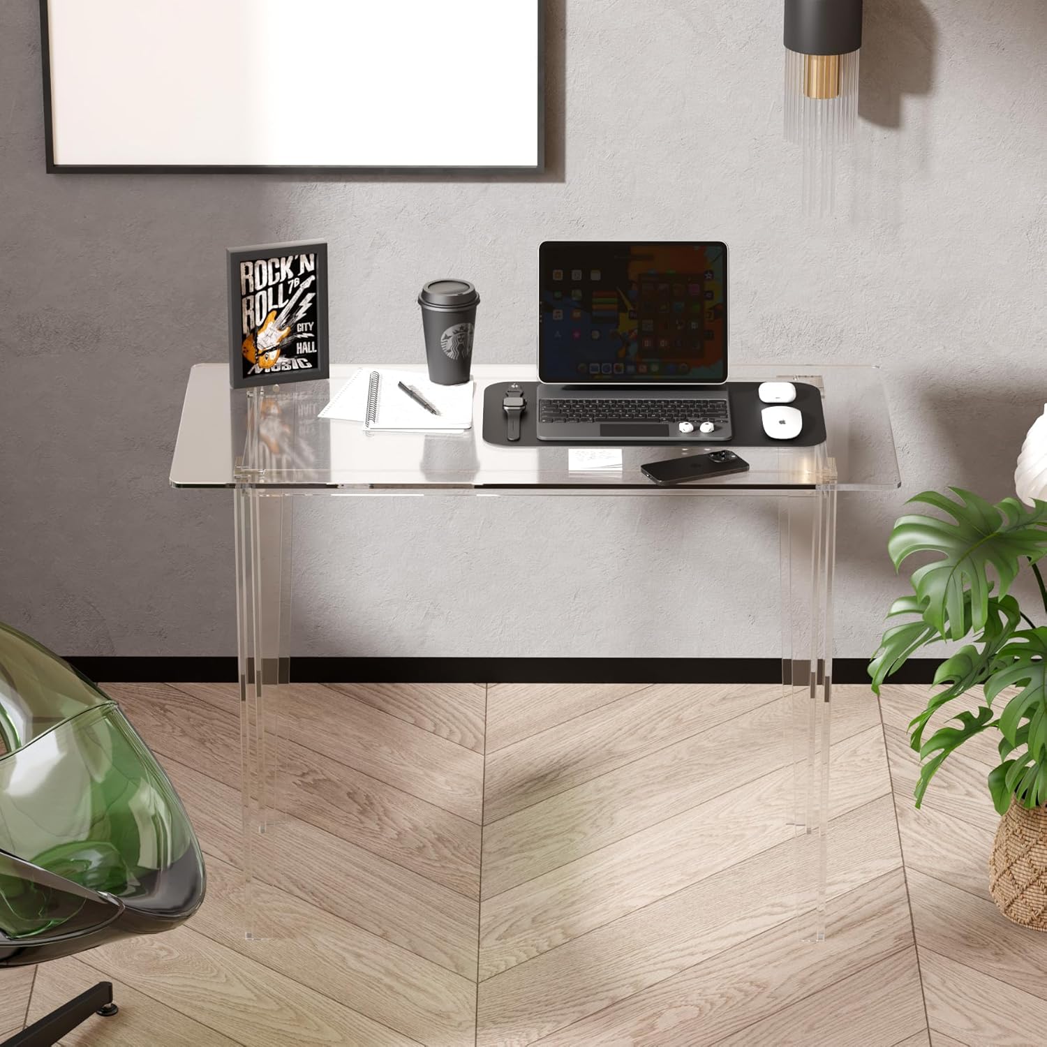 Acrylic Desk, Modern Study Table for HomeOffice-Extended Surface Multi-Purpose Console & EntrywayTable, Sturdy Lightweight Design (42.5-inch, Transparent)