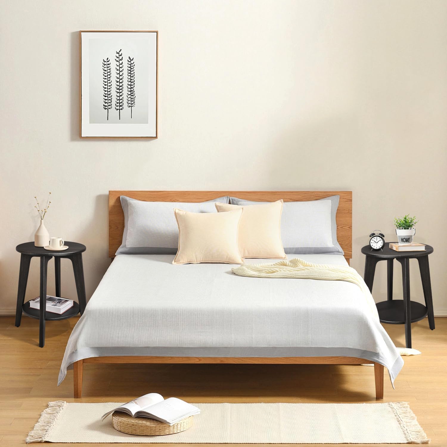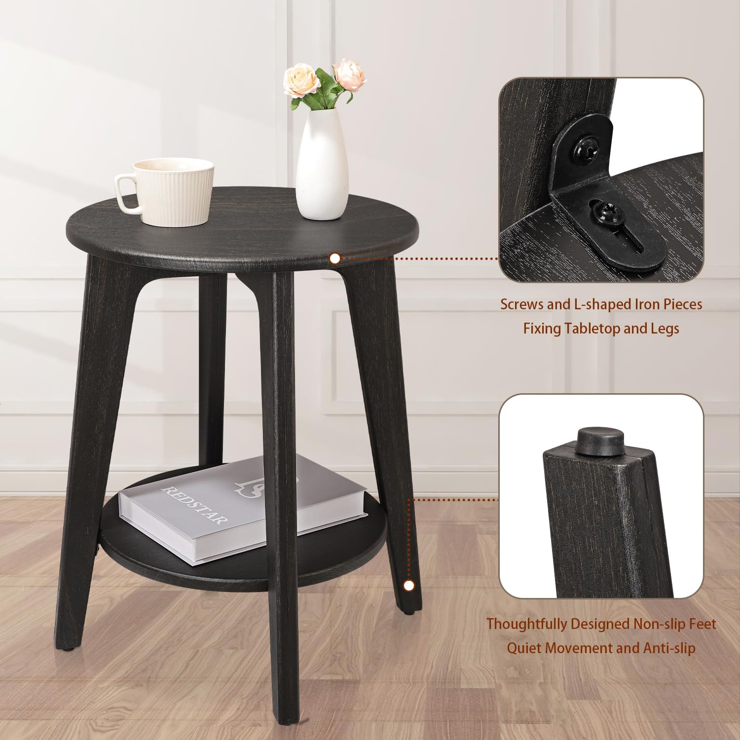 - High Quality & Unique Design: 2 round board as well as 4 legs made of solid wood form the stable foundation of this modern small round side table—this nightstand table boasts a stable, sturdy structure and can hold up to 200 lb in total