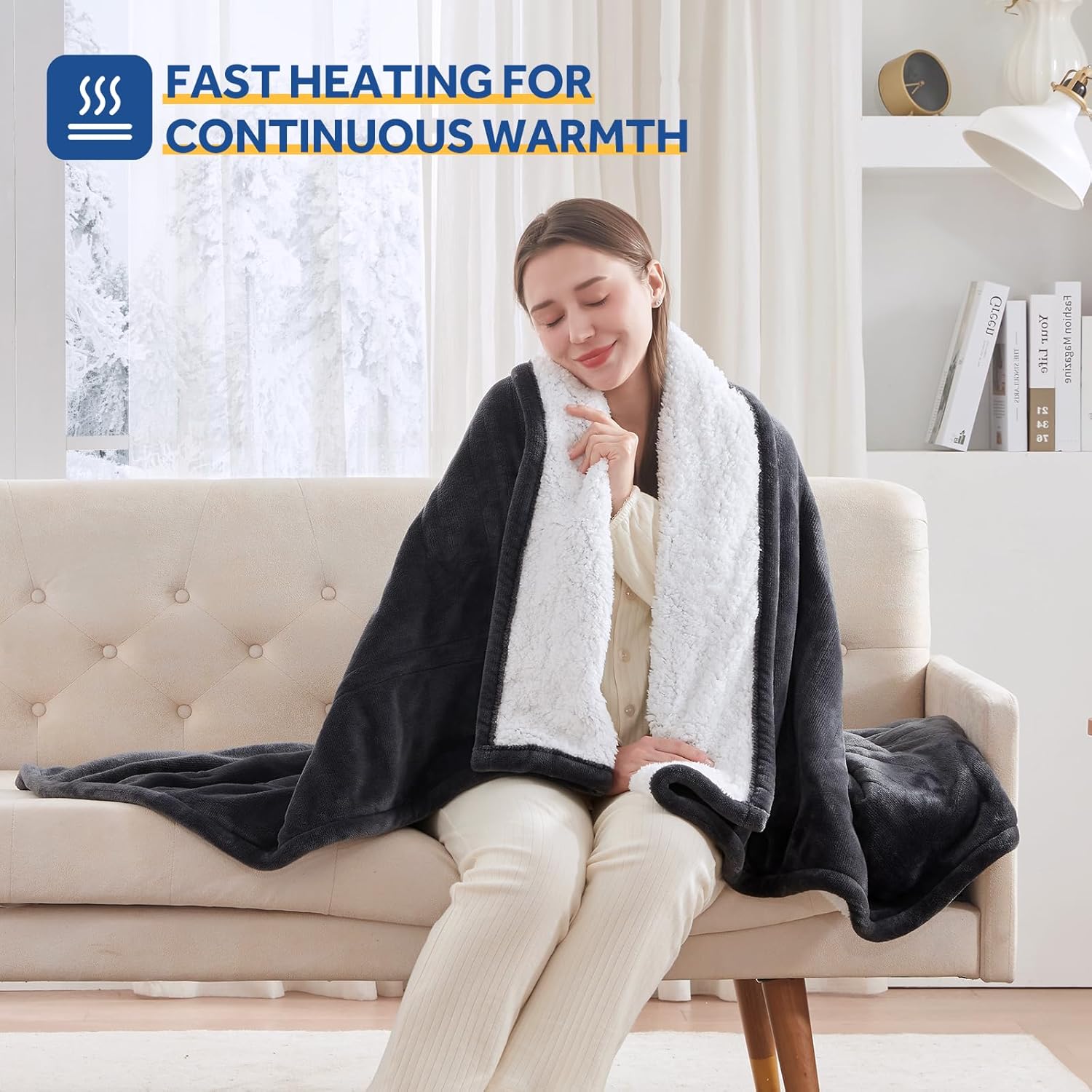 - 【PERFECT GIFT FOR ANY OCCASSION】 Luxuriously cozy flannel heated throw, a sherpa reverse, which provides a greater comfort level by soft touch. Enough length to connect to outlets, accompany you with fighting those cold winter nights
