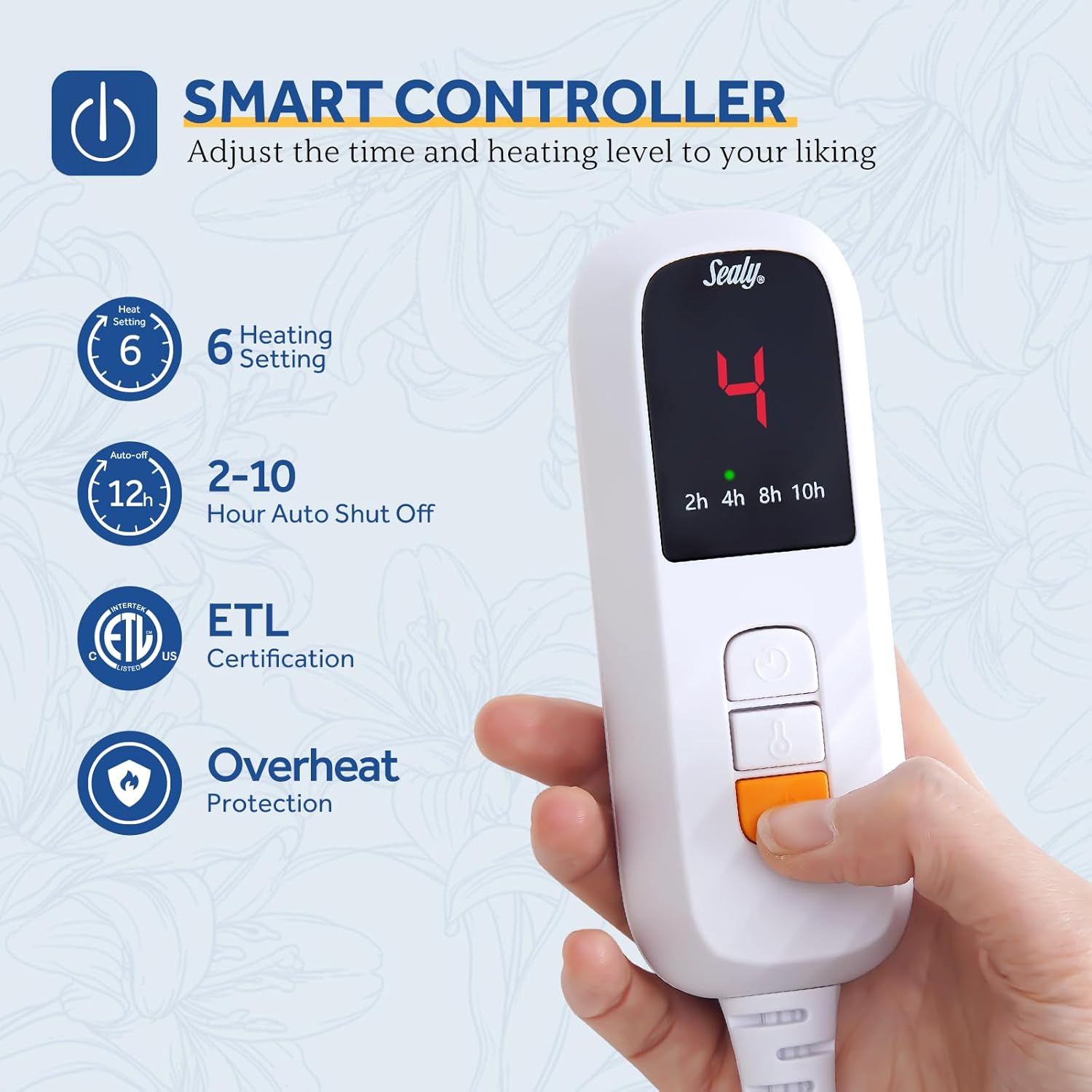 - 【6 HEATING LEVELS & 2-10 HOURS AUTO OFF】Sealy heating blanket have 6 heat levels and 2-10 hours auto shut off for customizable warm and energy efficient, using minimal energy while still providing effective warmth. Our electric blanket offers simple operation for a worry-free sleep in comforting warmth.