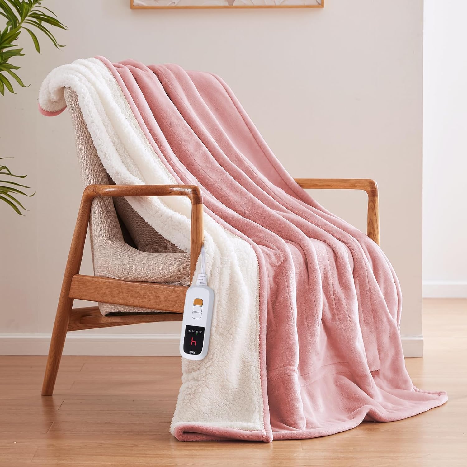 Sealy Electric Blanket Throw Size 50"*60",Super Cozy Flannel to Sherpa Reversible Heated Blanket Throw with 6 Heating Levels & 2-10 Hours Auto Off Overheating Protection Machine Washable,Pink