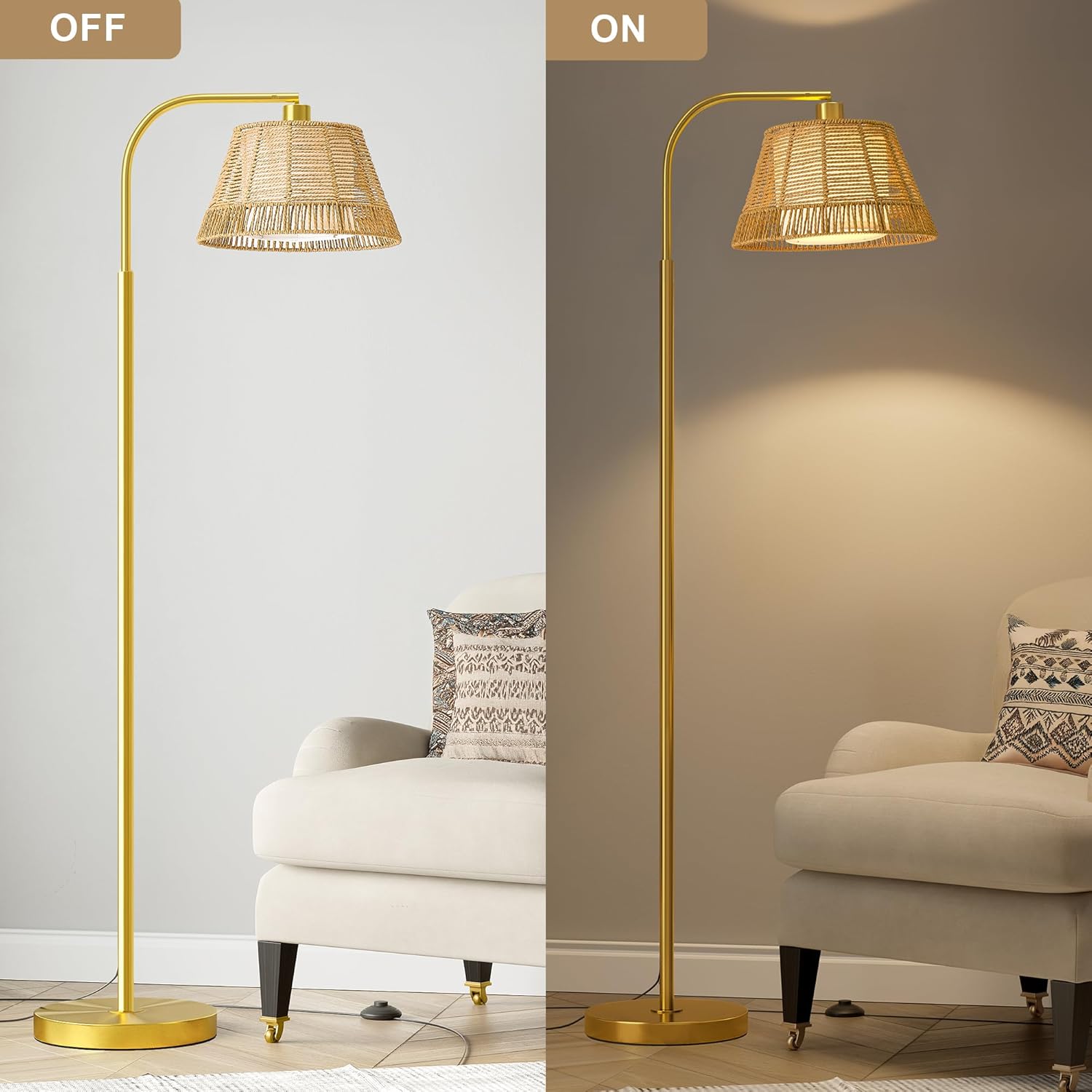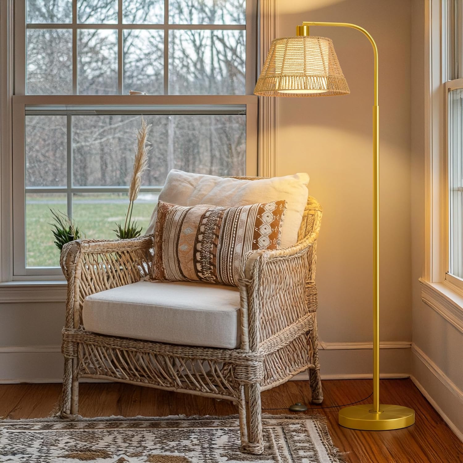 - 【Adjustable Lighting for Customized Ambiance】This boho rattan floor lamp features a flexible lamp head that rotates 350° horizontally and 60° vertically, allowing you to direct light exactly where you need it. Whether you're reading, relaxing, or working, this farmhouse-inspired lamp provides the perfect illumination for any setting."