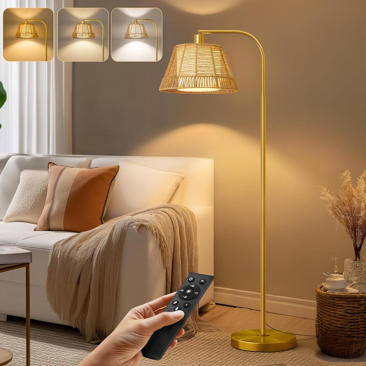 - 【Stepless Dimmable & 3 Color Temperatures】Saving your time to look for compatible bulbs, Our rattan floor lamp comes with an E26 smart bulb, which supports stepless brightness (1%-100%) and 3 color temperatures (3000K-6000K)and timer settings(1hour)as needed, This dimmable floor lamp also have pre-set modes offering various scenes such as: read, nursery, work and night light.The memory function can help you remember the last setting.
