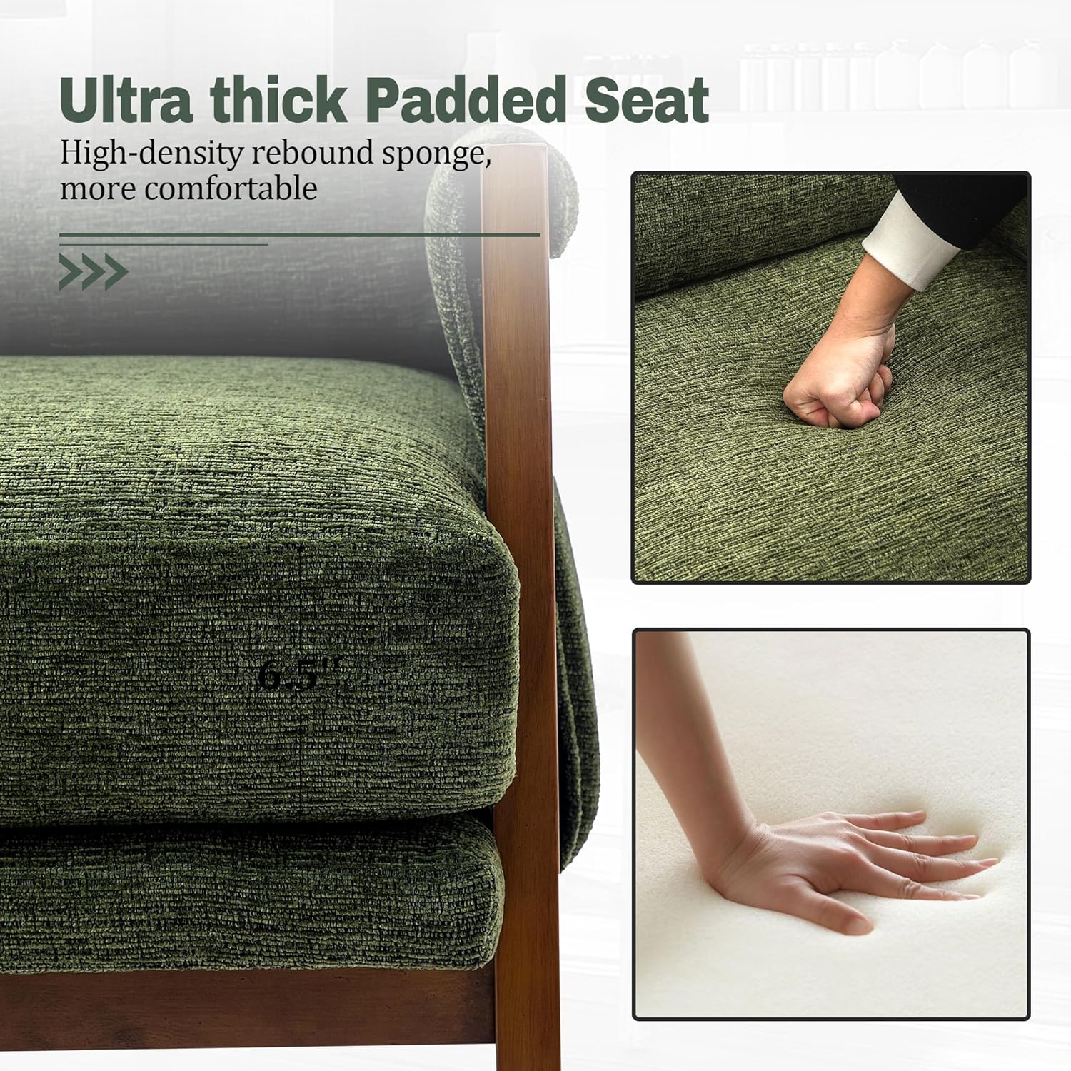 Modern Accent Chairs Set of 2 for Living Room Mid Century Arm Chairs Upholstered Bedroom Chairs Comfy Lounge Chairs with Solid Wood Frame, Green