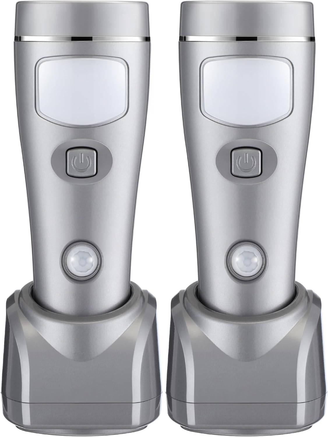 - 4 In 1 Function: rechargeable flashlights are 4 in 1 function; This light can be applied as LED motion sensor nightlight, emergency light, flashlight and rechargeable torch; Plug in the socket and you can use it as a night light; But if you just want to use it as a flashlight, you just need to turn on the button on the top of the light; It is especially handy for use during outdoor camping, nighttime events